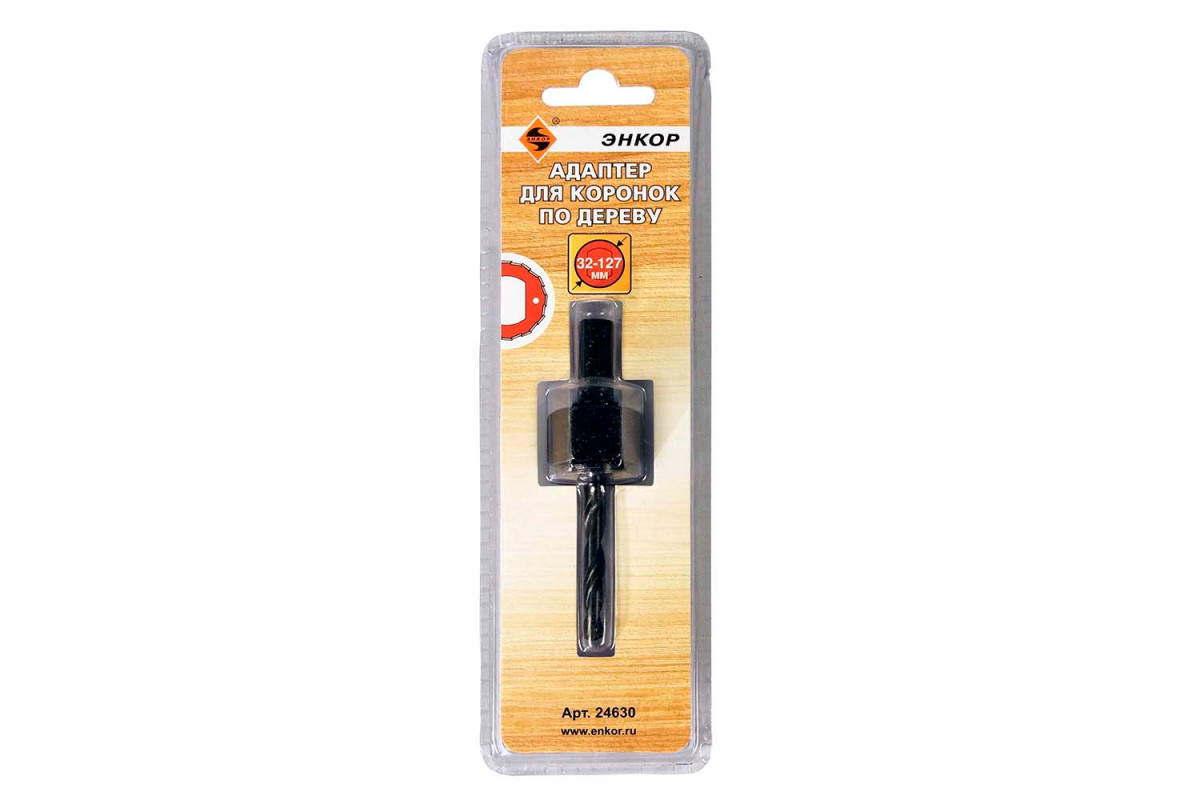Адаптер Энкор 24630 используется совместно с коронками по дереву диаметром от 32 до 127 мм. С помощью приспособления коронка надежно фиксируется в патроне дрели. Адаптер имеет шестигранный хвостовик 3/8".