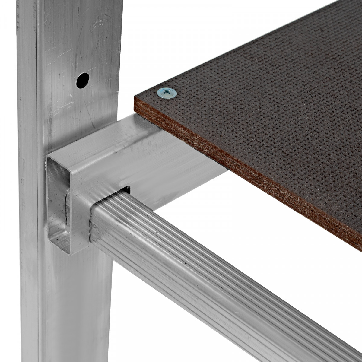 Прочный алюминиевый профиль обеспечивает устойчивость лестницы при работе на высоте.