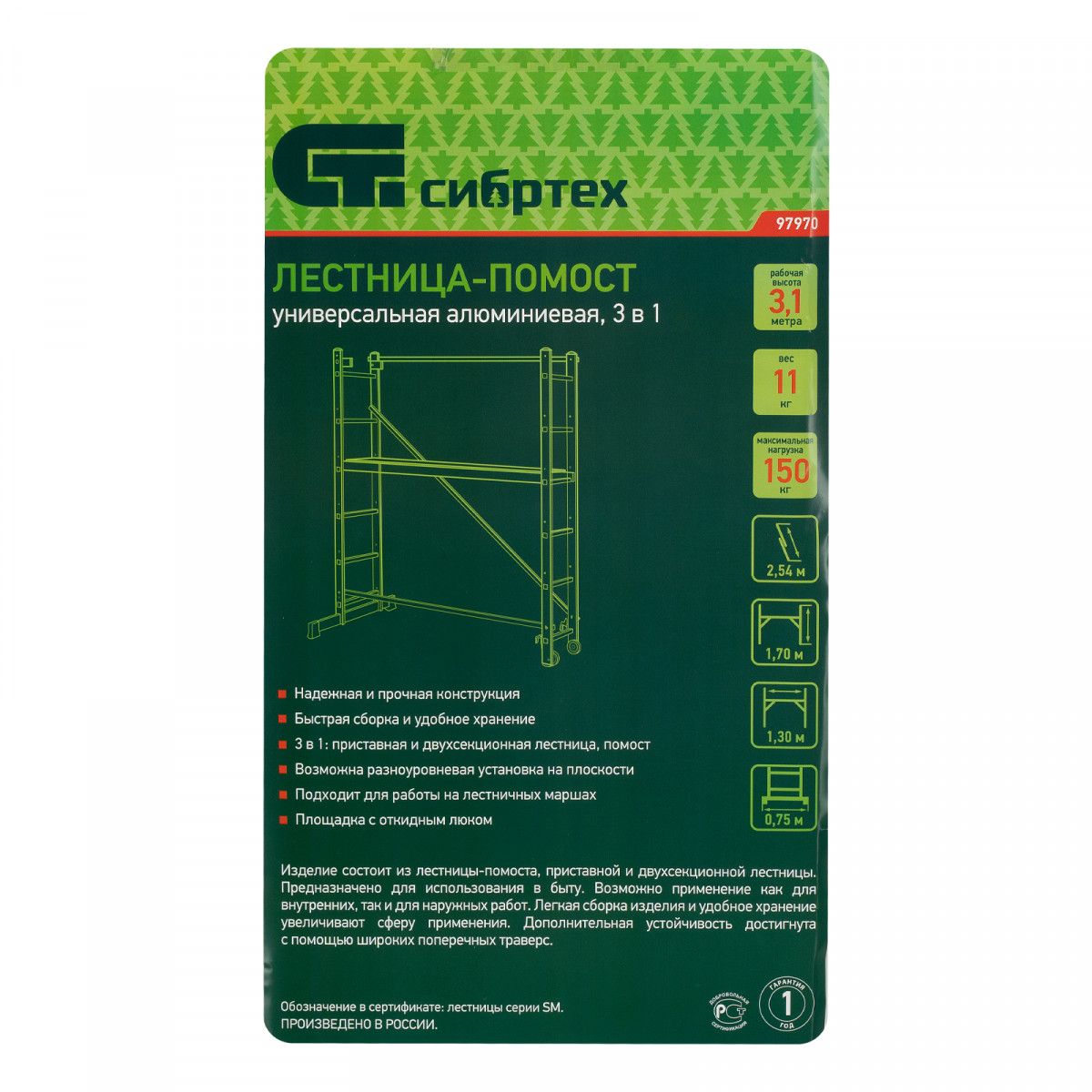 Алюминиевая лестница помост 3 В 1 (арт. в серт.: 1415206)