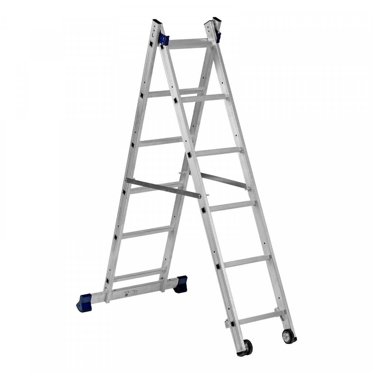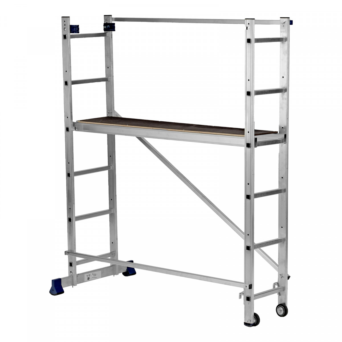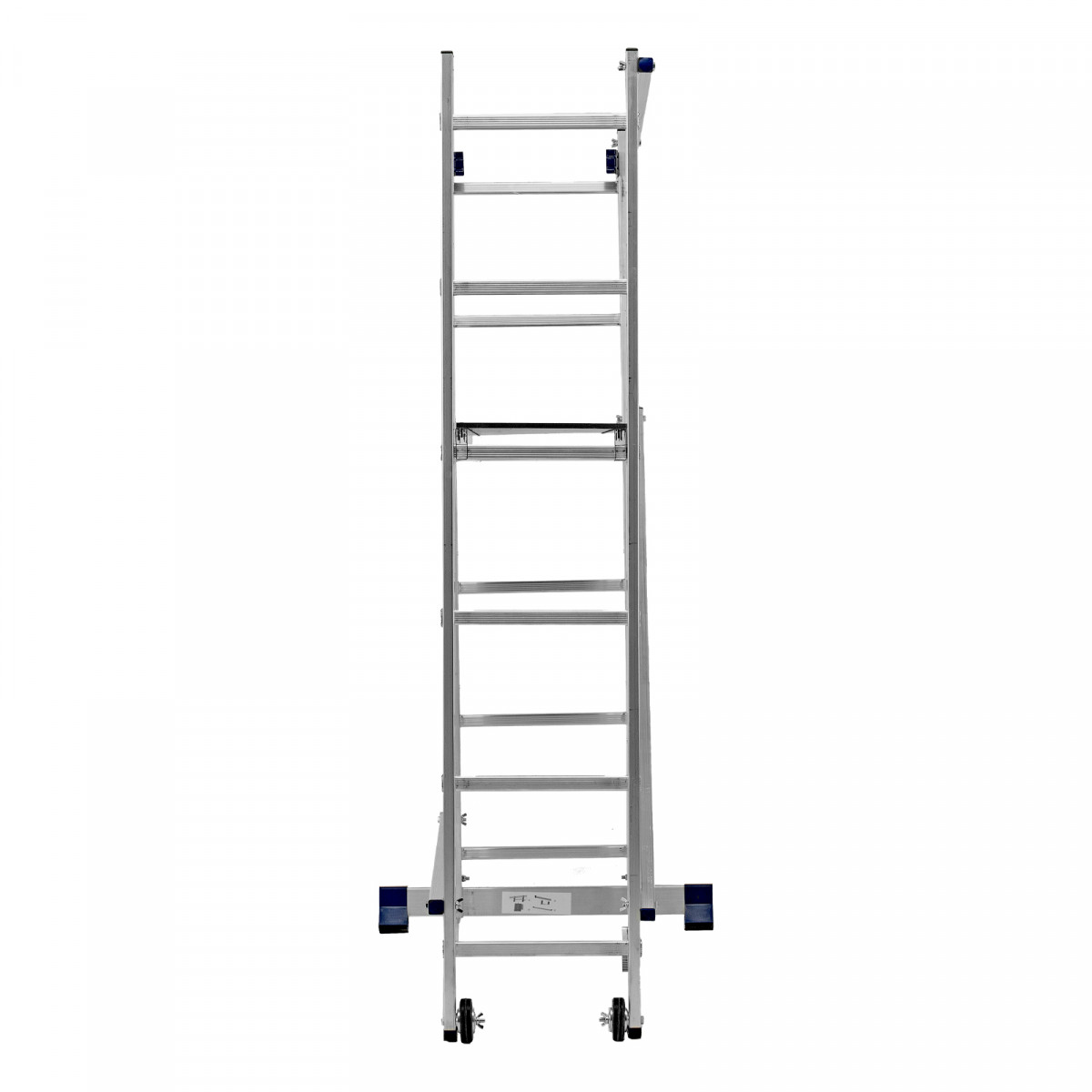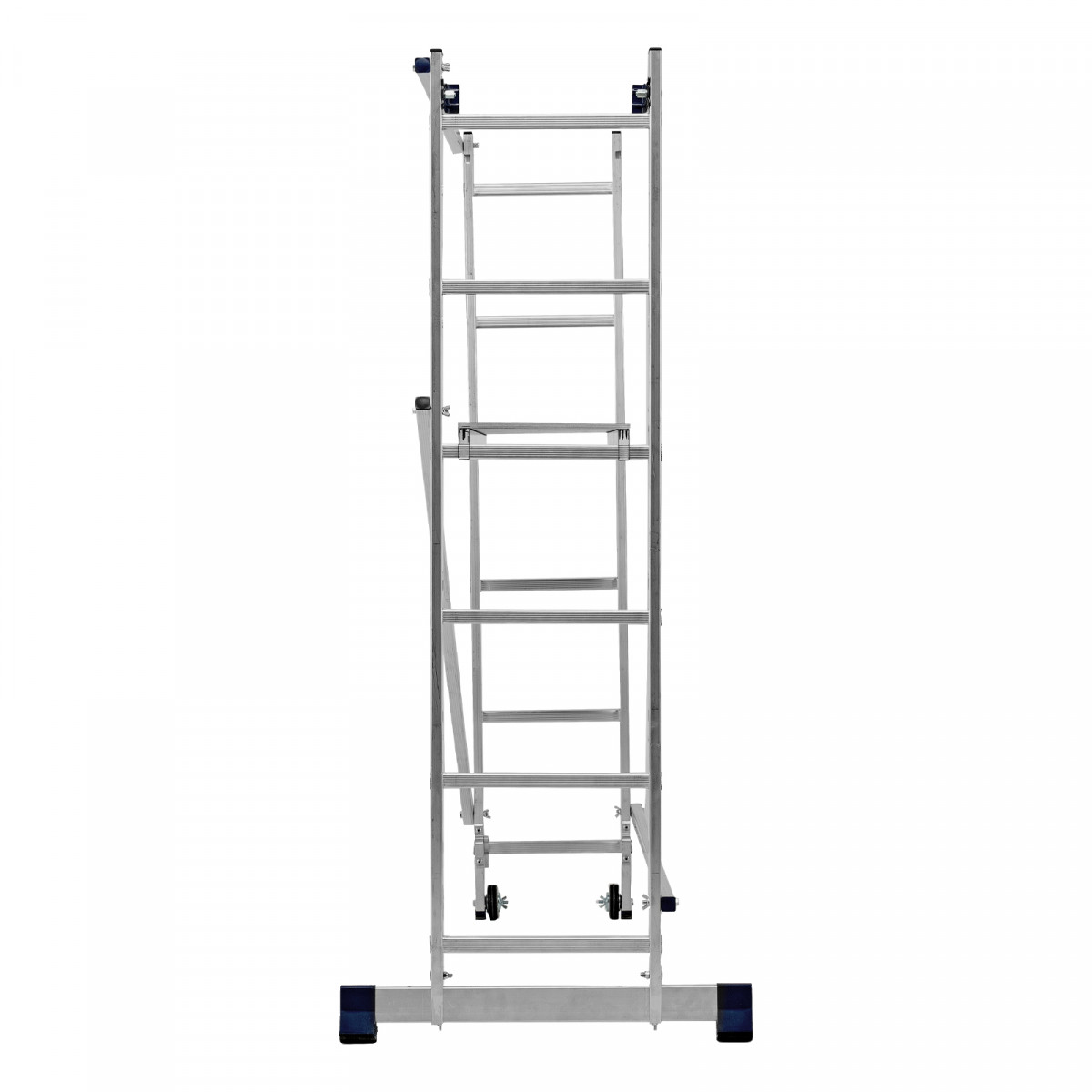 Лестница-помост 3 в 1 97970 необходима для проведения малярных и штукатурных работ на высоте нескольких метров. Площадка выдерживает нагрузку 150 кг, поэтому на ней может расположиться мастер с необходимыми инструментами. Помост трансформируется в двустороннюю стремянку и раздвижную приставную лестницу, что расширяет возможности его использования.