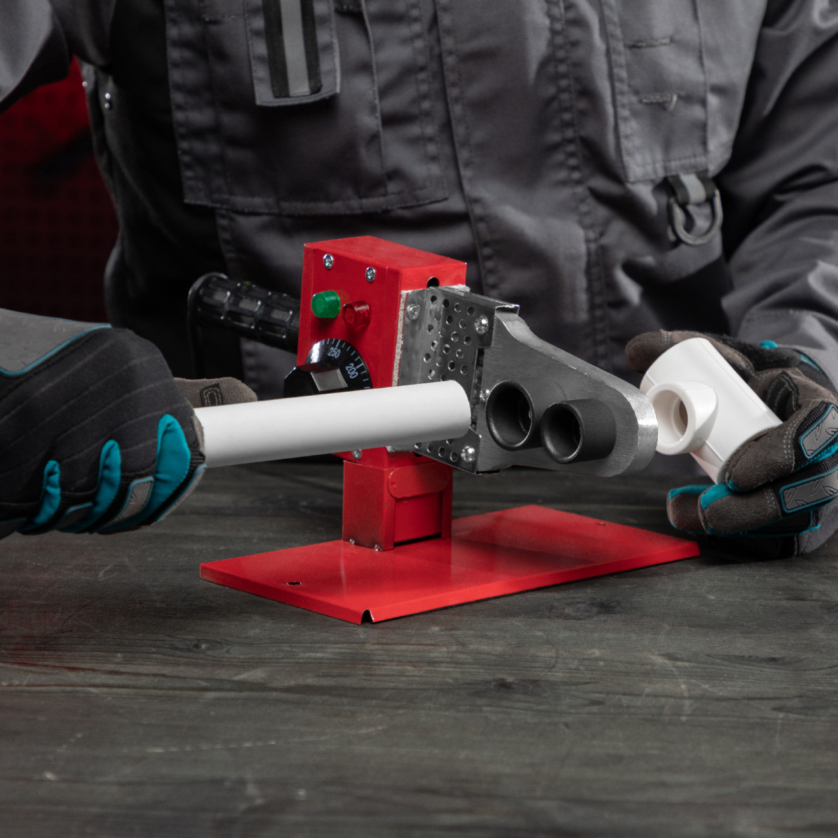 Аппарат для сварки пластиковых труб Kronwerk KW 600 94212 мощностью 600 Вт обеспечивает нагрев до температуры 300 °C и предназначен для работы с полипропиленовыми и полиэтиленовыми трубами диаметром 20, 25, 32 и 40 мм. Питается от однофазной бытовой сети 220 В, удобен для использования в частном доме и квартире. В комплект поставки входит 4 сменные насадки, что позволяет приступить к работе сразу после приобретения аппарата. Он будет полезен как для проведения профилактического ремонта, так и для монтажа систем водопровода, канализации и отопления.
