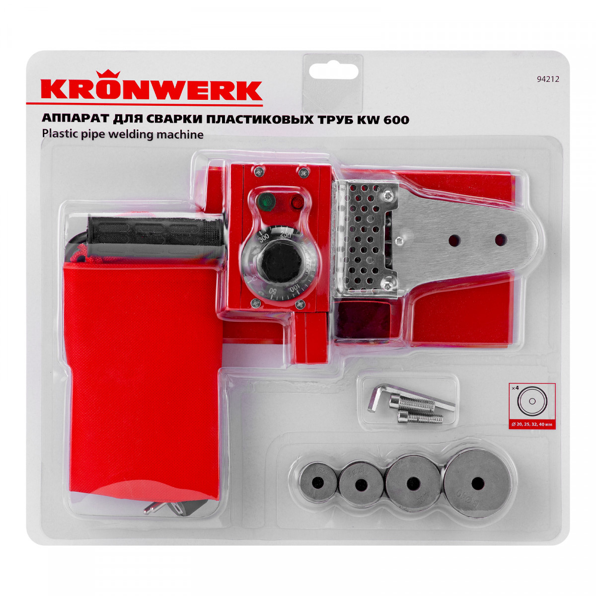 Аппарат для сварки пластиковых труб K W 600, 600 Вт, 300 °C, 20-25-32-40 мм, блистер Kronwerk
