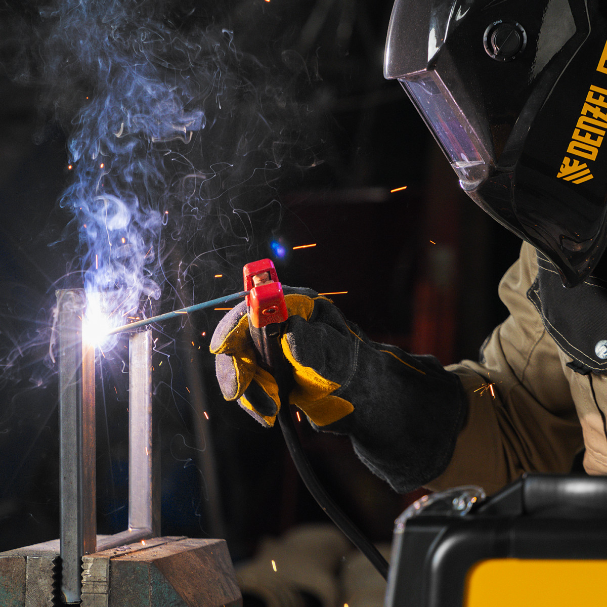 Инверторный аппарат дуговой сварки Denzel SDM-220 Top 94358, поставляется в кейсе, характеризуется продолжительностью включения 60% и работает со сварочным током до 220 А. Предназначен для сварки штучными электродами диаметром до 5 мм изделий из низкоуглеродистых сталей в режиме MMA, а также аргонодуговой сварки неплавящимся электродом TIG LIFT оптимальной для заготовок из чугуна и алюминия (горелка приобретается отдельно).,Основное достоинство линейки Denzel SDM — синергетическое управление, значительно облегчающее подбор оптимальных параметров сварки. Аппарат дает возможность указать толщину свариваемого металла, после чего автоматически подбирает оптимальный сварочный ток и диаметр электрода. И наоборот: достаточно установить требуемое значение сварочного тока и на дисплее отобразится минимальная рекомендованная толщина свариваемых деталей, а также диаметр электрода. Аппарат эффективно работает даже при нестабильном напряжении, предназначен для использования в профессиональной сфере и в быту.