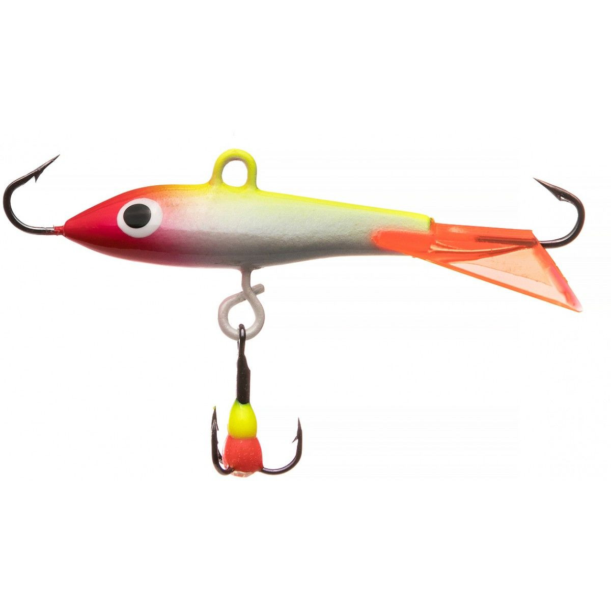 Балансир REX №7051 формой тела очень точно имитирует основной кормовой объект хищника - рыбьего малька, благодаря чему балансиры уловисты даже в период бесклевья, что особенно важно в зимний период. Играя на подергиваниях удочкой, балансир размашисто выписывает петли и плавно возвращается в исходное положение. Эффективная игра приманки соблазнит не только рыб, находящихся непосредственно рядом с лункой, но и привлечет хищника с больших расстояний. Модель имеет цветное высококачественное покрытие, жесткий пластиковый хвост и укомплектована острым тройником с пластиковой каплей со стразой. Хвост балансира окрашен в красный цвет, что делает его более заметным в темноте водных глубин. Острые крючки и надежная фурнитура позволяют ловить любую хищную рыбу, будь то "спортивный" окунь или трофейные щуки и судаки.