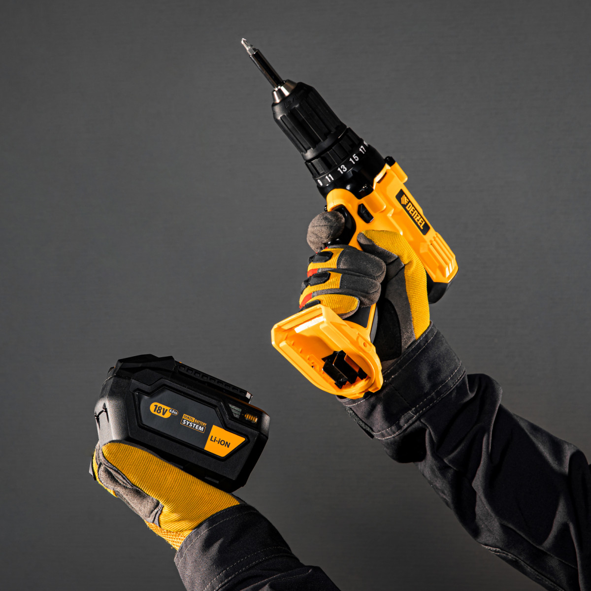 Батарея имеет внушительную емкость 6 Ач, это позволяет использовать инструмент в тяжелых условиях, где раньше мог использоваться преимущественно сетевой инструмент. Благодаря отсутствию эффекта памяти аккумулятор сохраняет максимальную эффективность на протяжении всего срока службы.