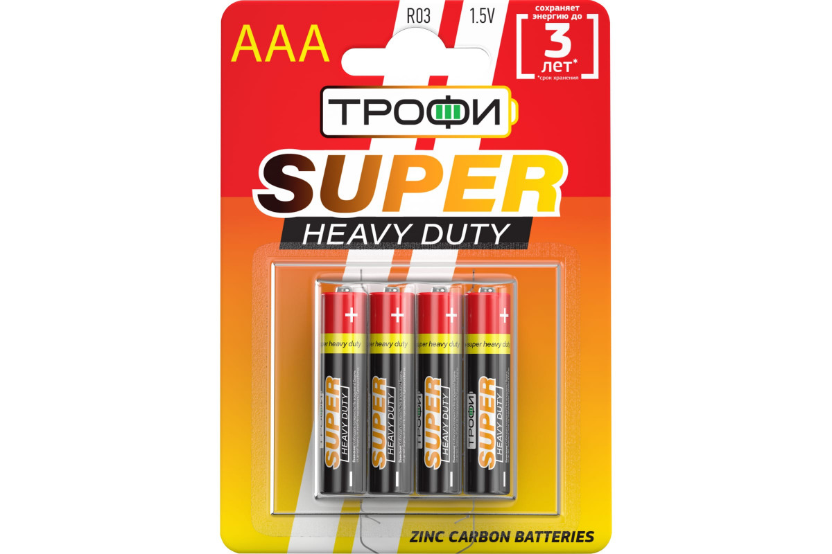 Элемент питания Трофи R034BL- это солевые (цинковые) батарейки серии EXTRA для питания устройств с умеренным и распределенным во времени потреблением энергии: пульты дистанционного управления, часы, бытовые светодиодные фонари и др.Типоразмер- AAA/мизинчиковая(R03;LR03;FR03)