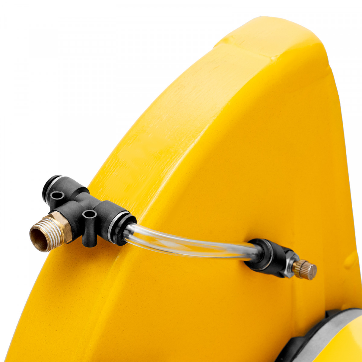 Бензорез оснащен универсальным штуцером для подачи воды. Использование водяного охлаждения позволяет уменьшить количество образующейся пыли и снизить нагрузку на двигатель.
