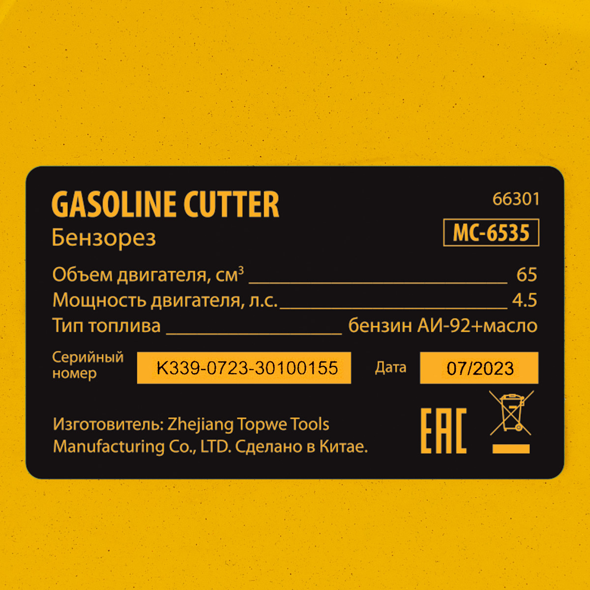 • Гарантия 3 года — высокое качество бензореза подтверждено производителем.
