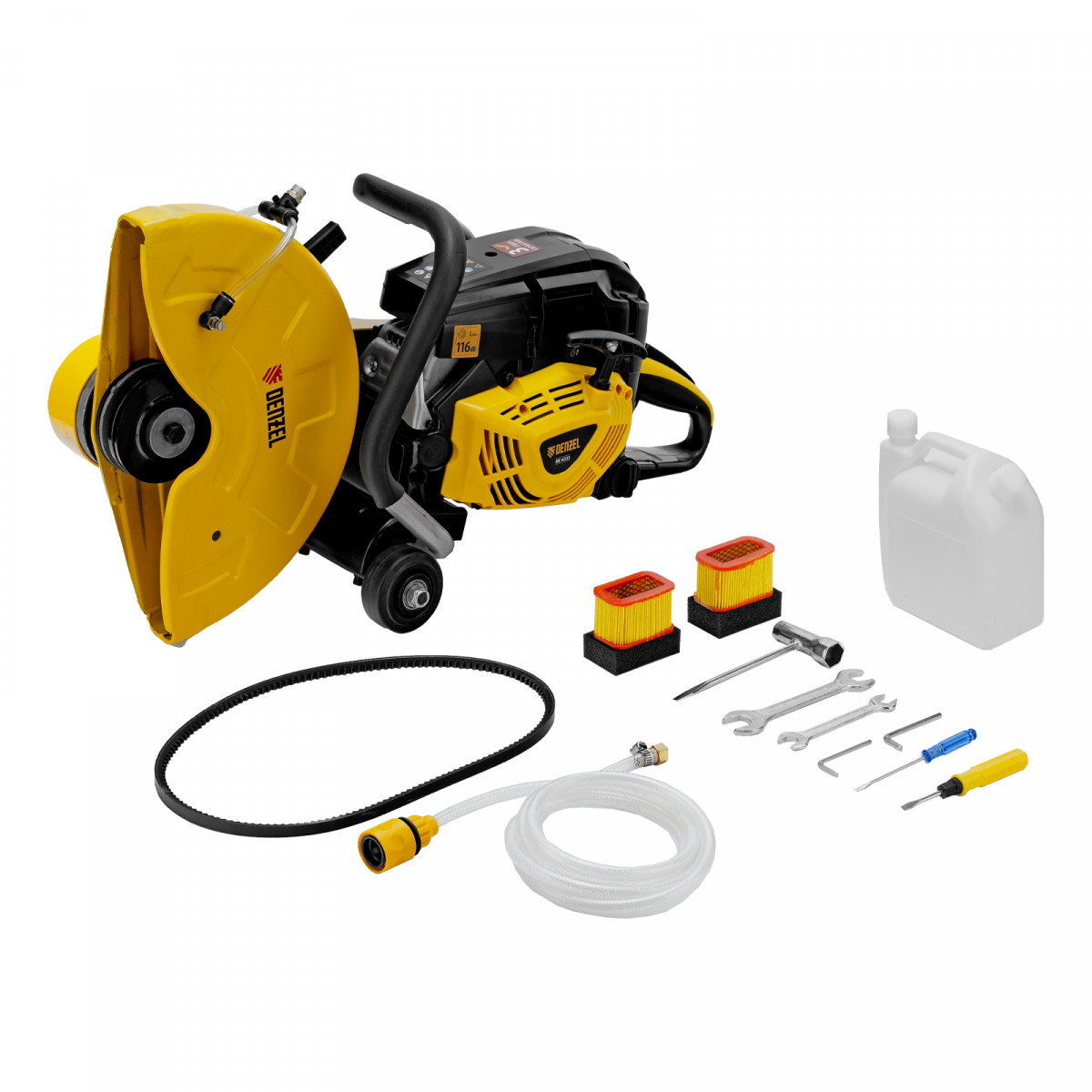 Бензорез Denzel MC-6335 66301 предназначен для работы с бетоном, асфальтом, чугуном, сталью и другими твердыми материалами. Оптимален для проведения демонтажных работ на строительной площадке, также может применяться во время спасательных операций. Для работы используются алмазные, абразивные и зубчатые диски диаметром 350 мм. Эффективное решение поставленных задач обеспечивает двигатель объемом 65 см3 и мощностью 4,5 л.с.