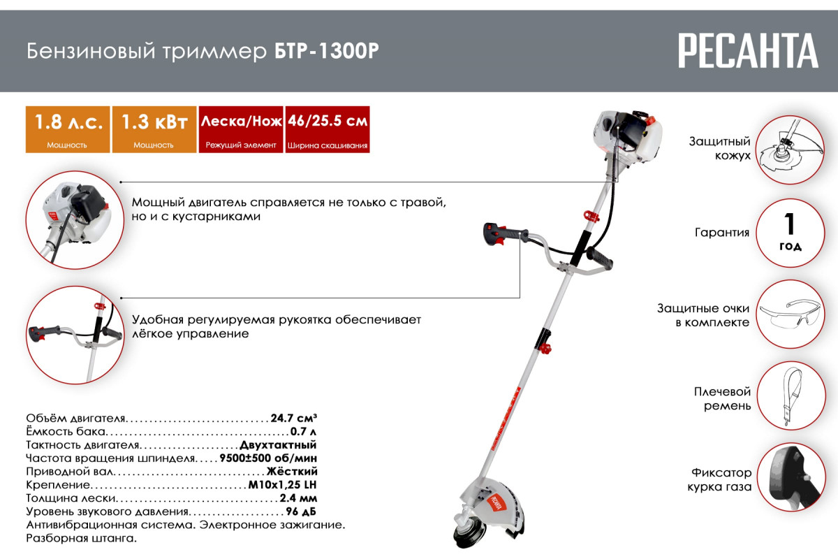 Бензиновый триммер этой серии безопасен в работе благодаря защитному кожуху, антивибрационной системе и блокиратору курка газа.