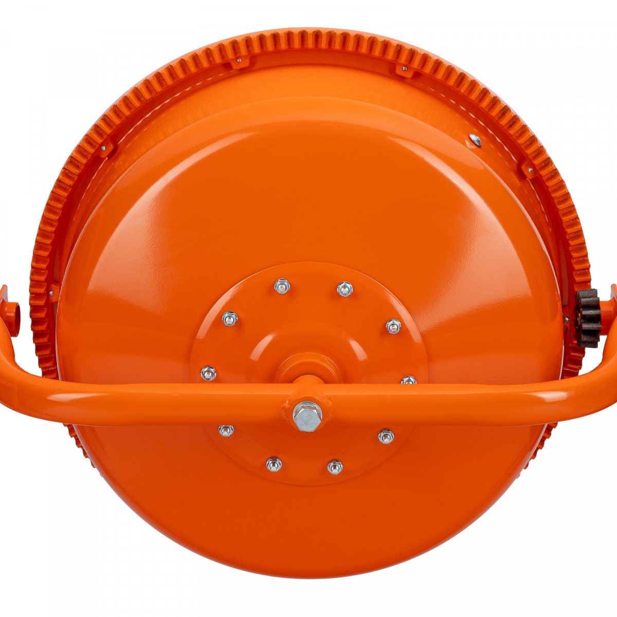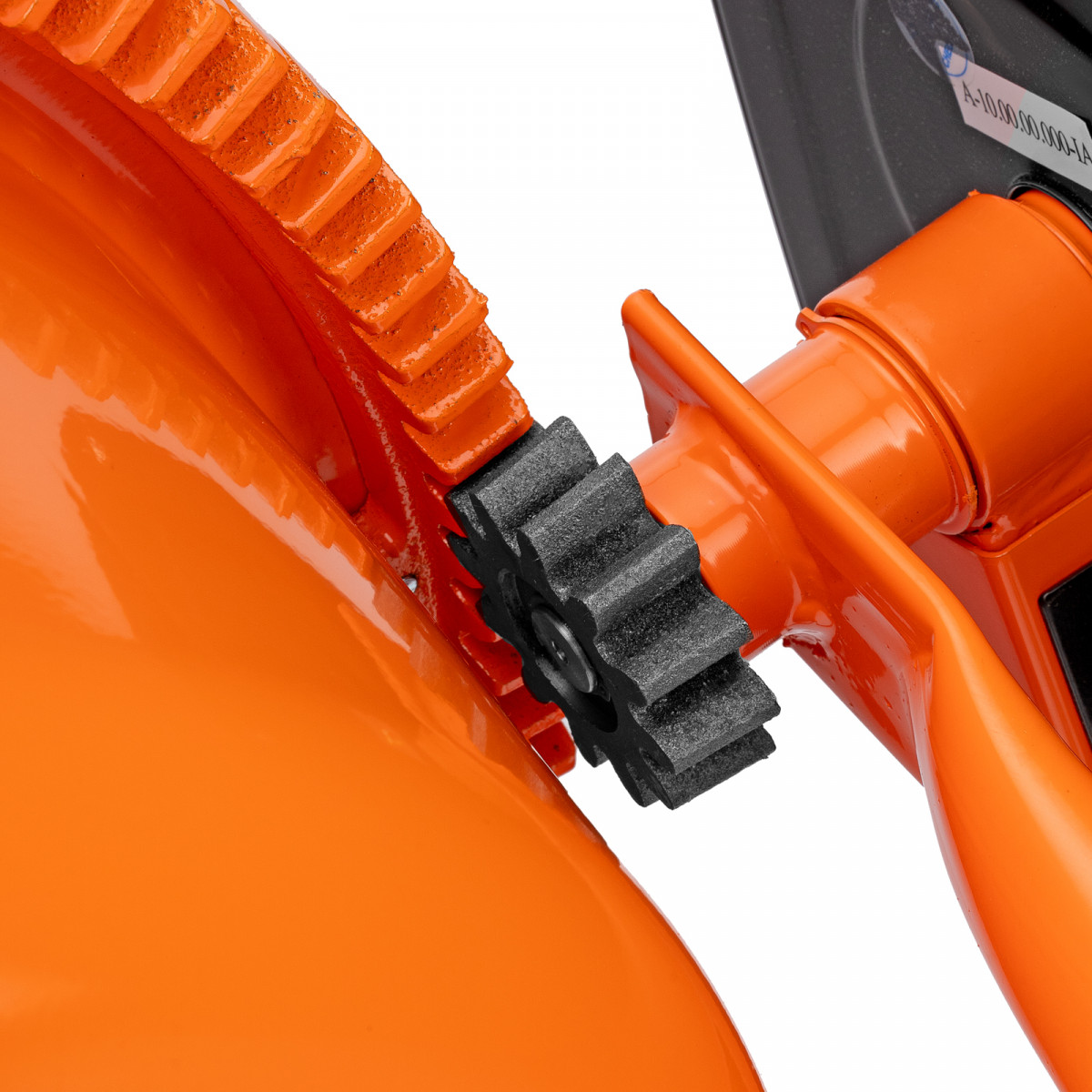 - Удобная загрузка и выгрузка смеси — барабан наклоняется при помощи маховика и легко фиксируется в нужном положении.