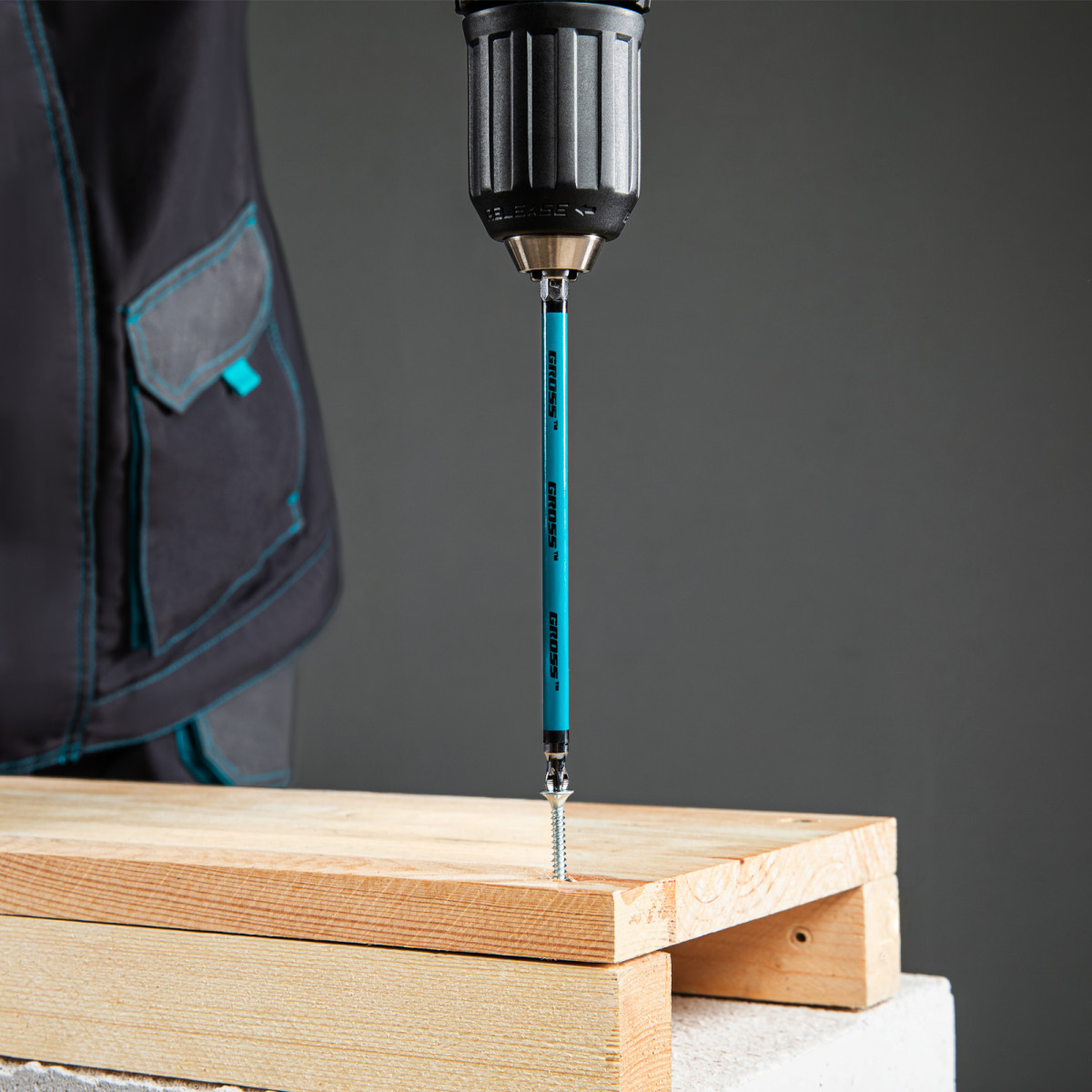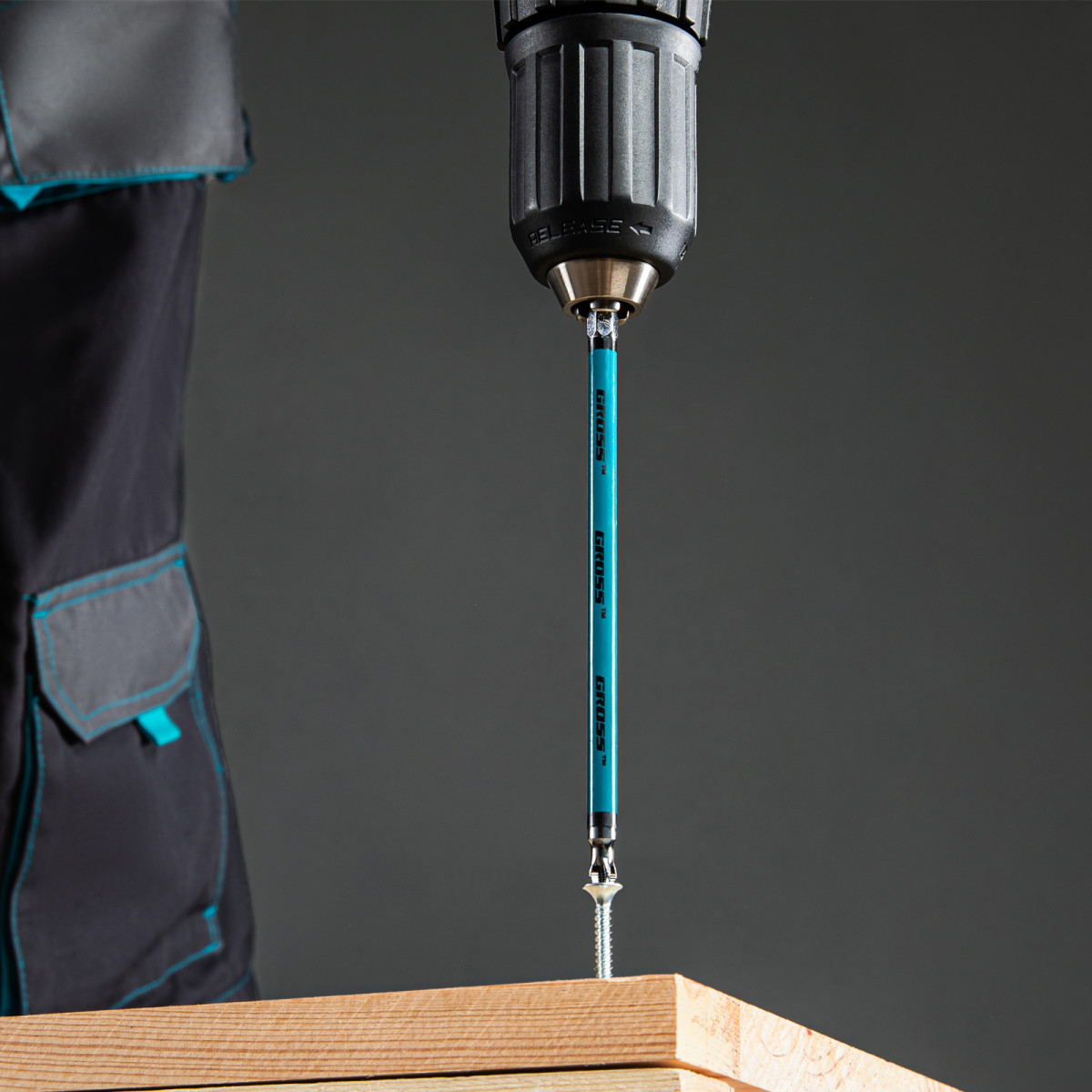 • Высокая результативность даже в ограниченном пространстве — благодаря удлиненному профилю 150 мм битами удобно работать в труднодоступных местах.