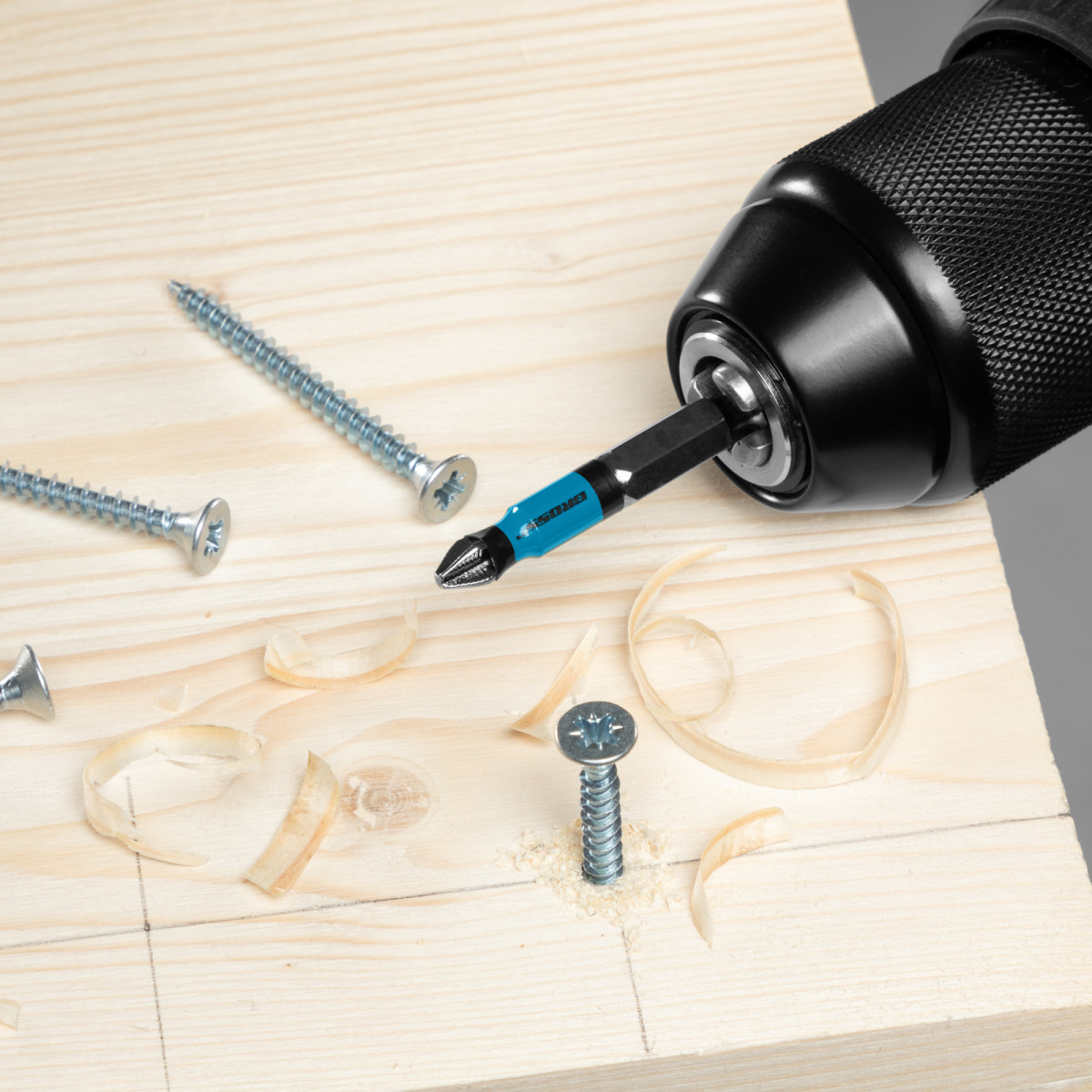 • Высокая результативность даже в ограниченном пространстве — благодаря удлиненному профилю 50 мм битами удобно работать в труднодоступных местах.
