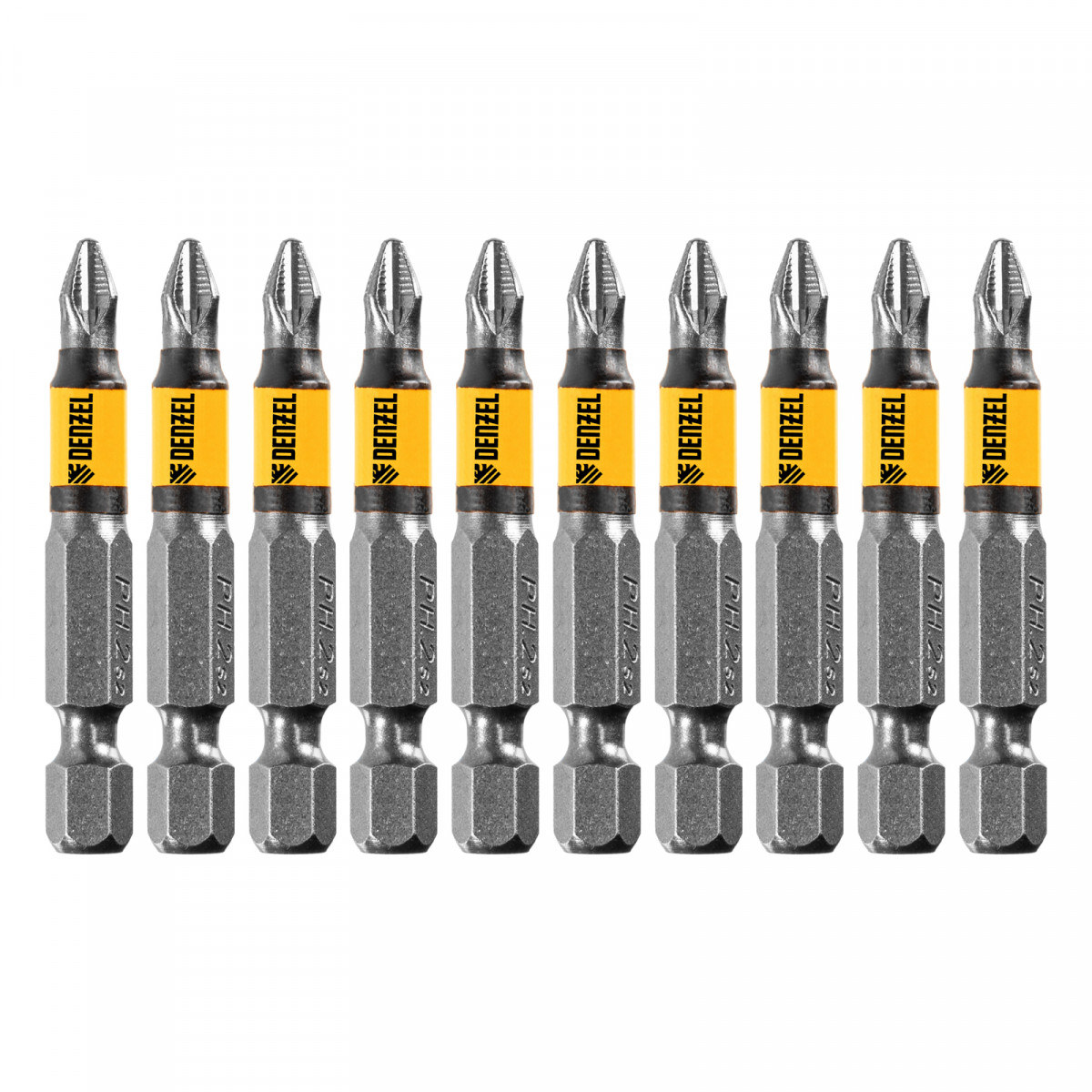 Бита PH2х50, сталь легированная S2, 10 шт., круглый профиль, отрывная упаковка, Е 6,3 Denzel