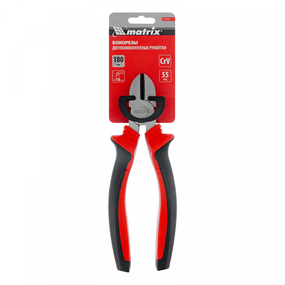 Бокорезы Matrix 17791 длиной 180 мм, из хромованадиевой стали, с двухкомпонентными рукоятками, предназначены для выполнения слесарных и ремонтно-монтажных работ: разрезания проводов, кабелей, стальной проволоки и гвоздей диаметром до 1,6 мм. Пригодятся в частной мастерской или на строительной площадке, будут полезны не только начинающему мастеру, но и профессионалу.