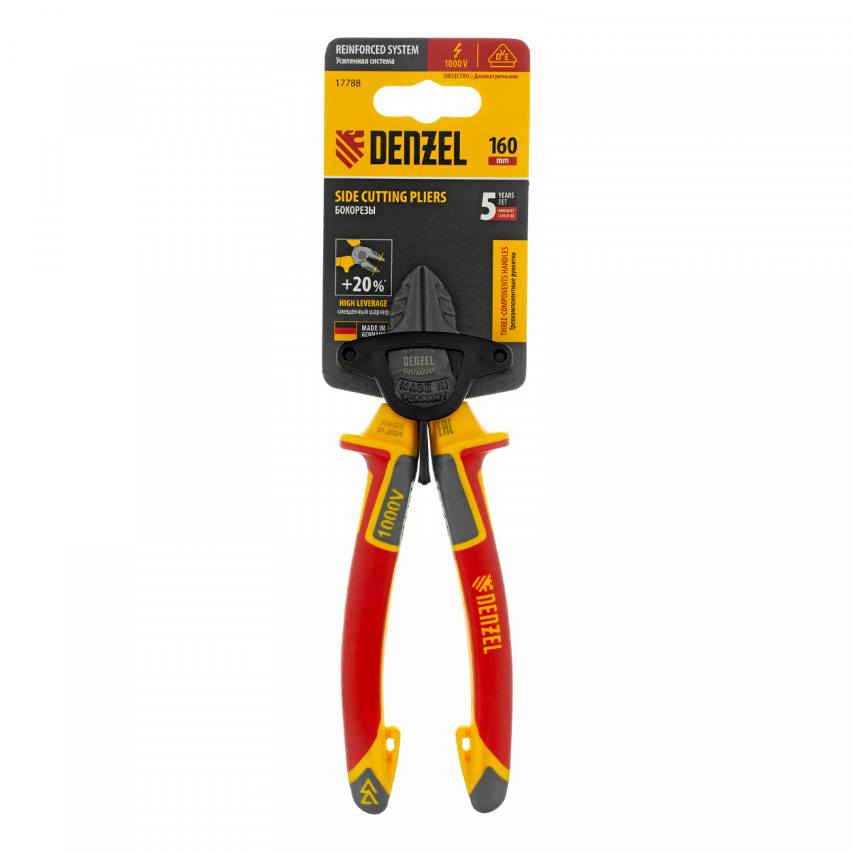 Бокорезы, диэлектрические рукоятки, до 1000 В, трехкомпонентные рукоятки, 160 мм Denzel