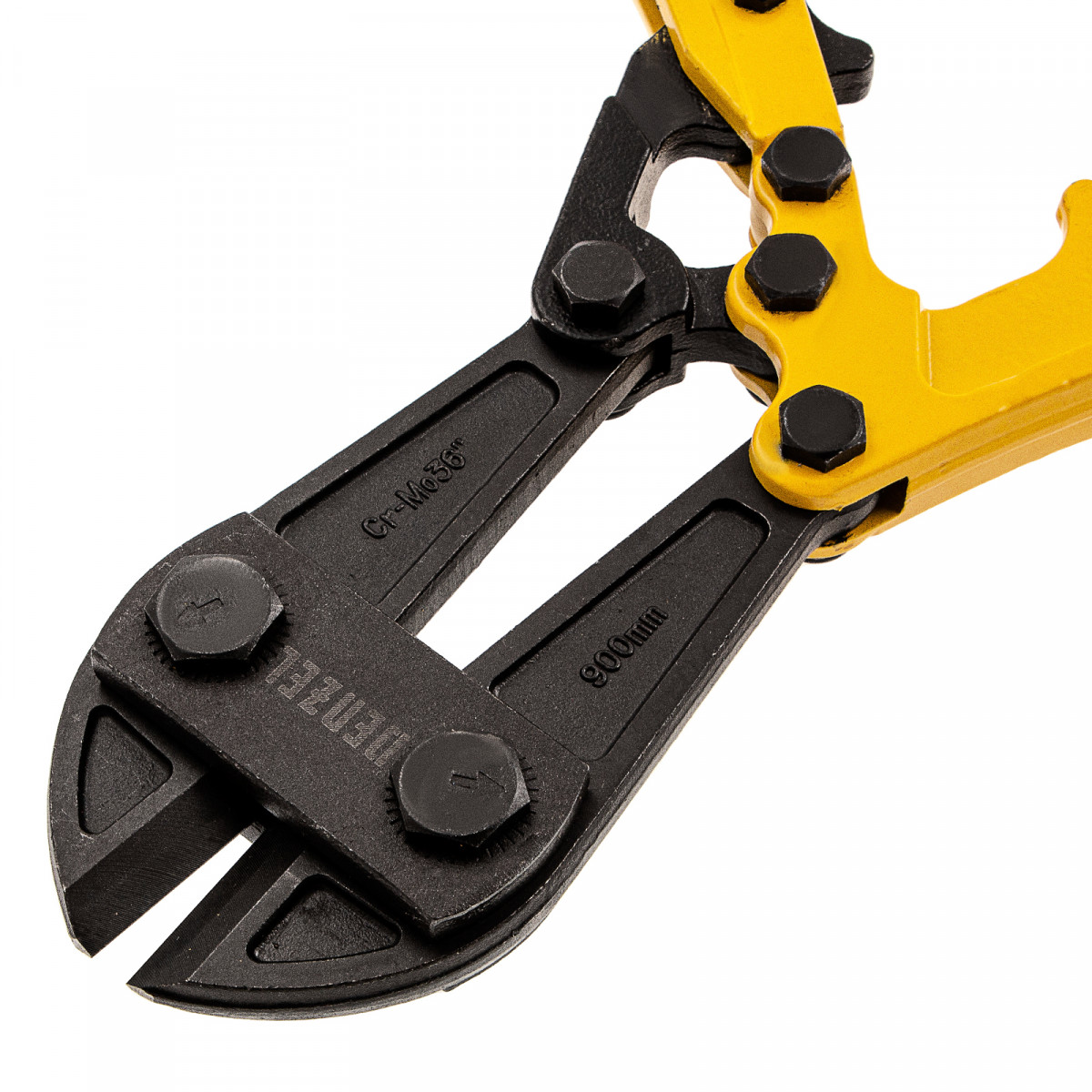 Болторез Denzel 78539 длиной 900 мм (36 дюймов), из стали Cr-Mo, предназначен для перекусывания стальных прутков диаметром 14,3 мм, болтов и шурупов, тросов, разнородной проволоки.