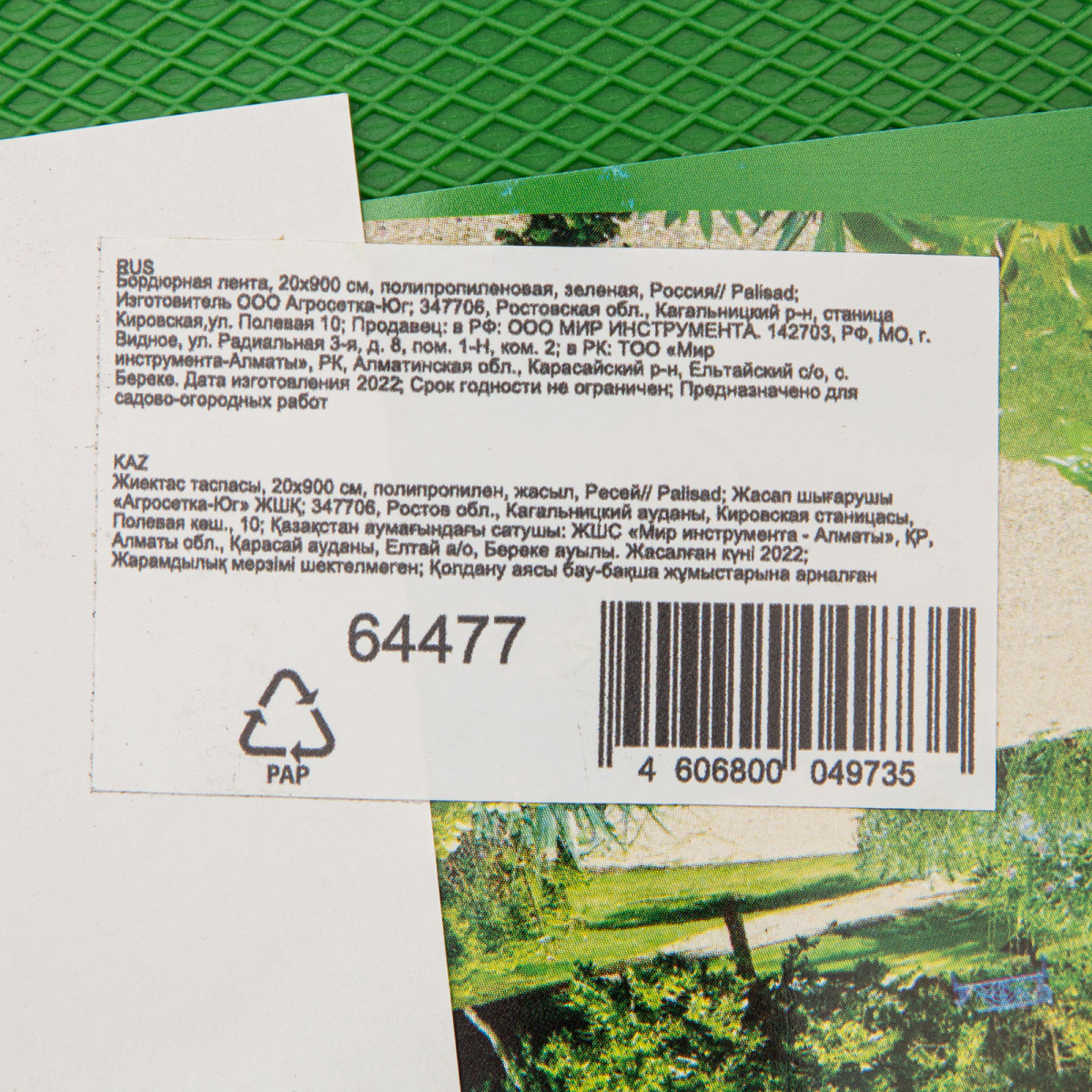 Бордюрная лента, 20 х 900 см, полипропиленовая, зеленая, Palisad