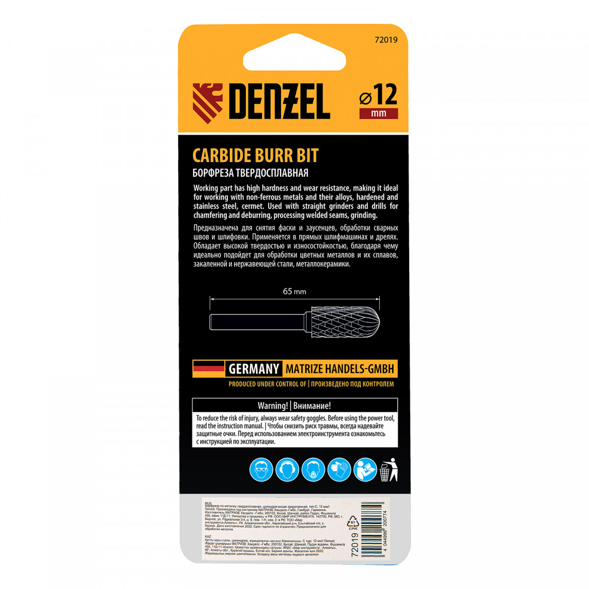 Борфреза по металлу твердосплавная, цилиндрическая закругленная, тип-С, 12 мм Denzel