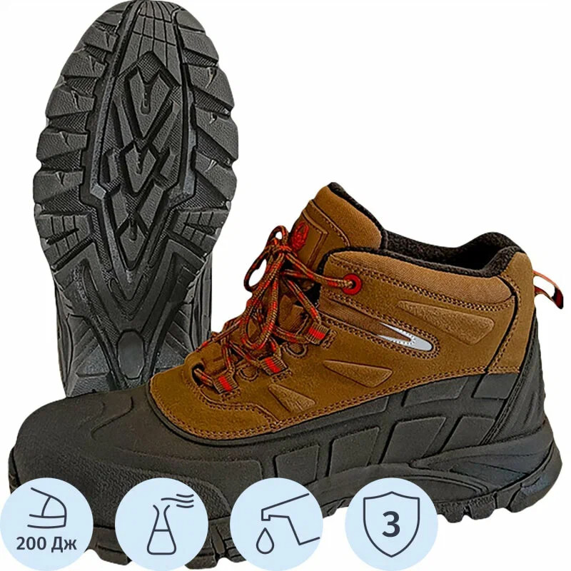 Верх обуви выполнен в виде галоши из CPU пластика и микрофибры с отделкой из современных обувных материалов, что обеспечивает необходимые защитные функции обуви и значительно уменьшает массу. CPU — это литой эластомер, производимый с помощью специального процесса литья. Проявляет высокую износостойкость и гибкость, даже при низких температурах, а также стоек к жирам, маслам и растворителям при длительном нагревании. Флисовая подкладка сохраняет тепло и отводит влагу. Внутренний поликарбонатный подносок данной модели, выдерживает нагрузку до 200 Дж. Подошва из высококачественной резины. Обладает повышенной гибкостью и амортизирующими свойствами и придает обуви легкость, комфортность. Протектор препятствует скольжению. Глухой клапан исключает попадание внутрь влаги, пыли и мелких предметов. Объемная колодка специальной конструкции дает возможность работать целый день, не испытывая дискомфорта и усталости.