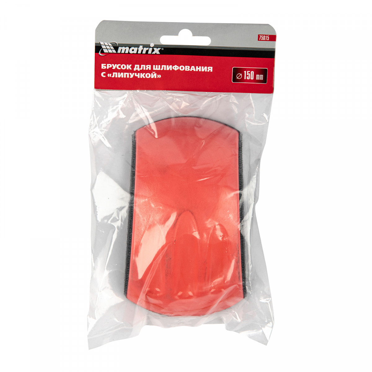 Брусок для шлифования Matrix 75815 с посадочным диаметром 150 мм, с «липучкой», — альтернатива шлифовальной машинке, используется для обработки металла, древесины, камня и пластмассы при проведении ремонтных, отделочных, малярных работ. Позволяет надежно зафиксировать абразивные круги (диски) на ворсовой основе диаметром 150 мм.