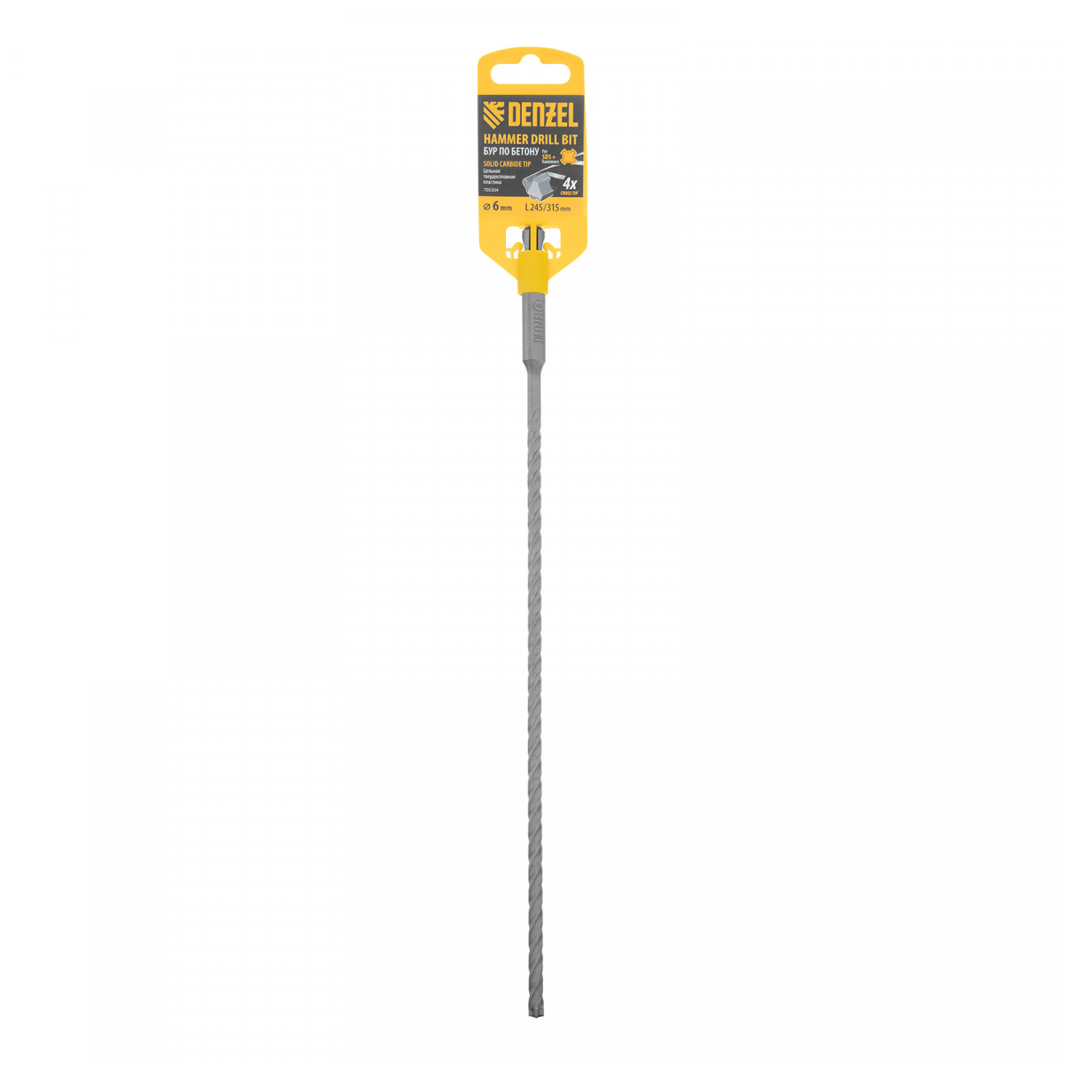Бур по бетону Denzel 705304 длиной 315 мм, с цельной крестовой пластиной и хвостовиком SDS-plus — оснастка для перфораторов, предназначенная для получения отверстий диаметром 6 мм в бетоне, кирпиче, камне. Благодаря цельному карбидному наконечнику с 4 режущими кромками бур оптимален для работы с материалами высокой твердости, в том числе с армированным бетоном. Оснастка превосходит большинство аналогов по своим рабочим качествам и подходит для профессионального использования.