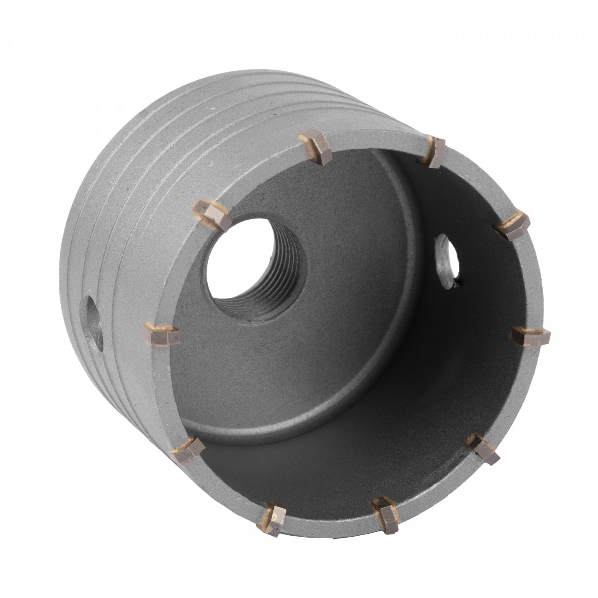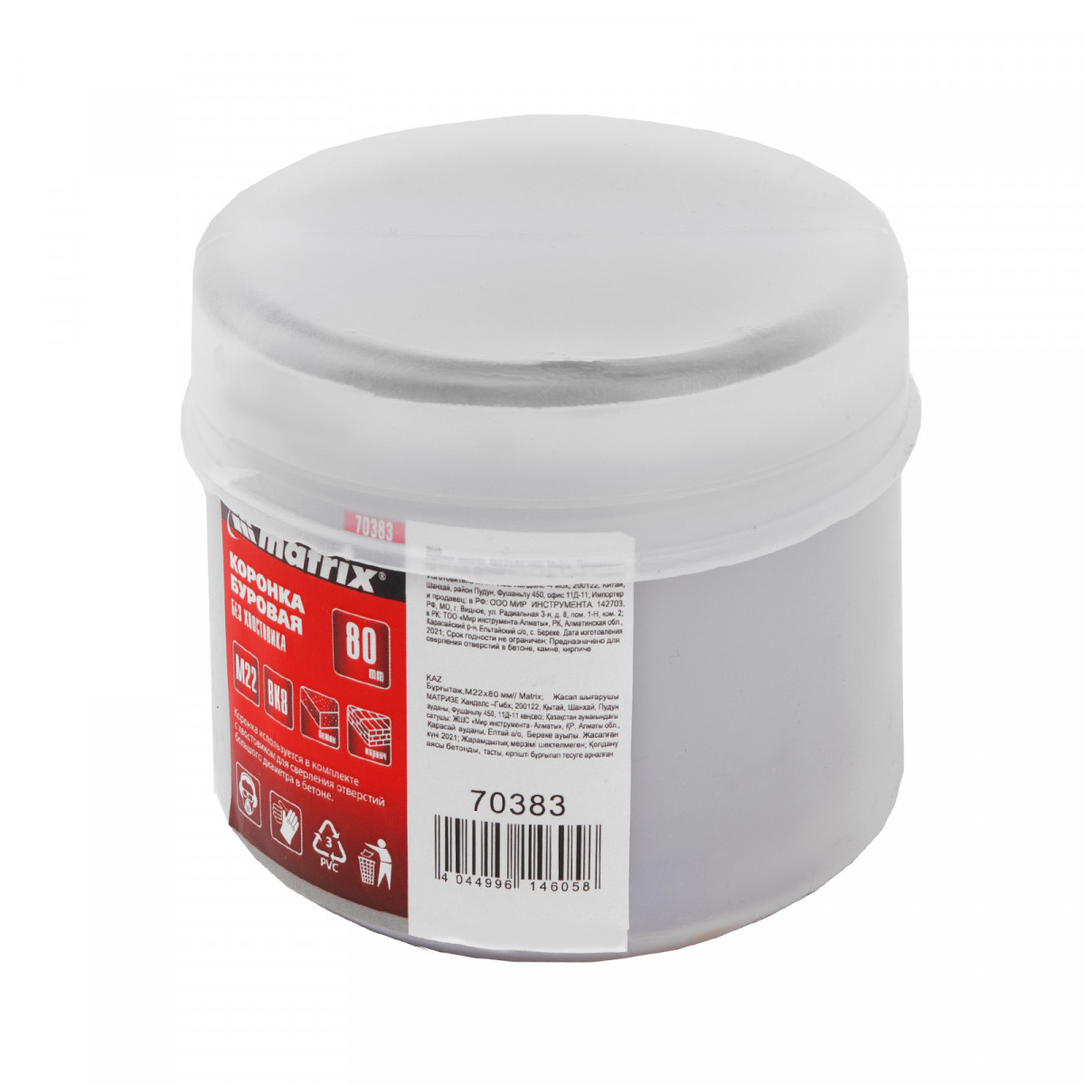 Буровая коронка M22 х 80 мм Matrix 70383 рассчитана на сверление отверстий в бетоне, кирпиче, граните, природном и искусственном камне. Устанавливается на ударные дрели или перфораторы с патронами под хвостовик SDS-Plus или SDS-Max. Коронка позволяет получить большие отверстия, поэтому пригодится для монтажа розеток, выключателей и прокладки труб.