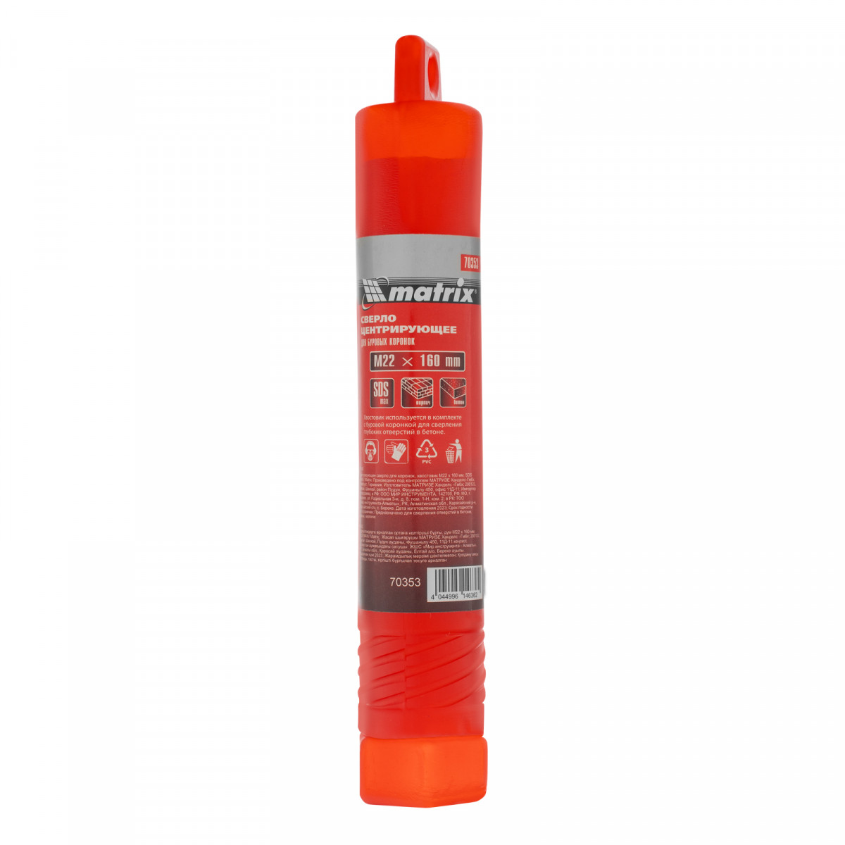 Центрирующее сверло для коронок Matrix 70353 с хвостовиком SDS MAX длиной 160 мм, с посадкой М22, используется для получения отверстий в бетоне. Позволяет выполнять глубокое засверливание, предотвращает смещение коронки и повышает точность работы. Хвостовик SDS MAX совместим с патронами тяжелых перфораторов.