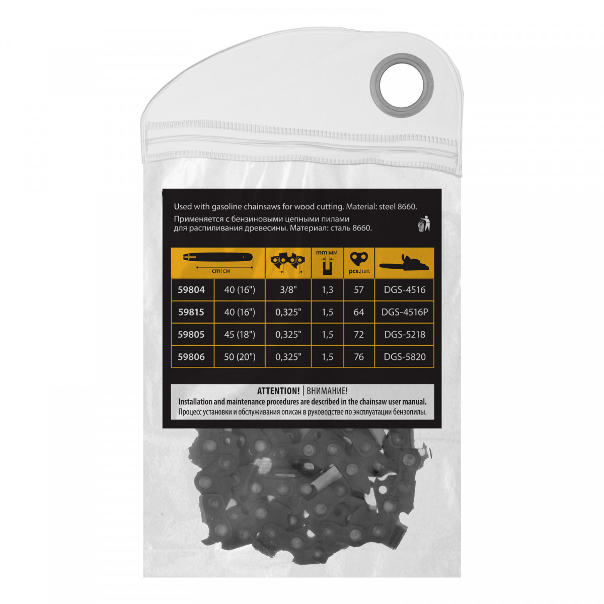 Цепь для бензопилы DGS-4516P, шина 40 см (16") шаг 0,325", паз 1,5 мм, 64 звена Denzel