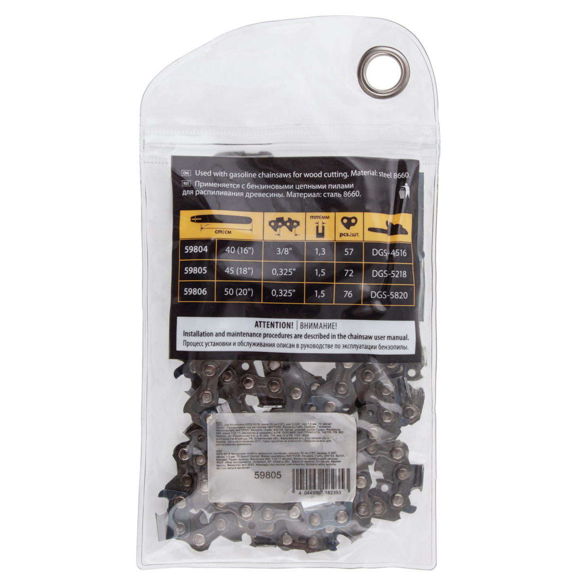 Цепь для бензопилы DGS-5218, шина 45 см (18") шаг 0.325", паз 1.5 мм, 72 звена Denzel