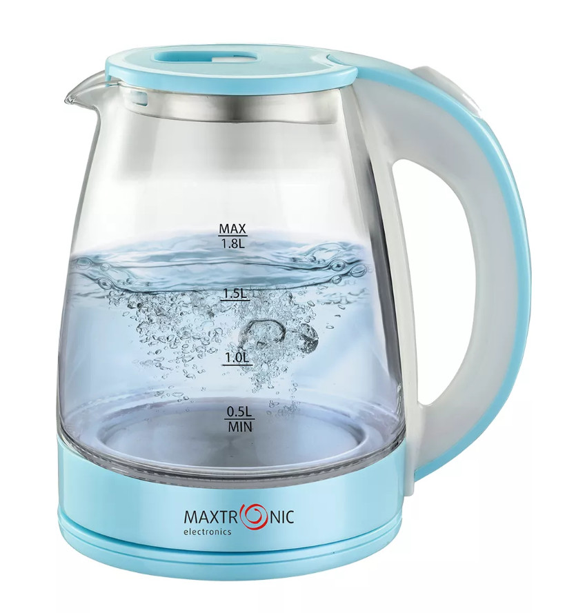 Чайник электрический стекло 1,8 л 1800 Вт бело-голубой MAX-206