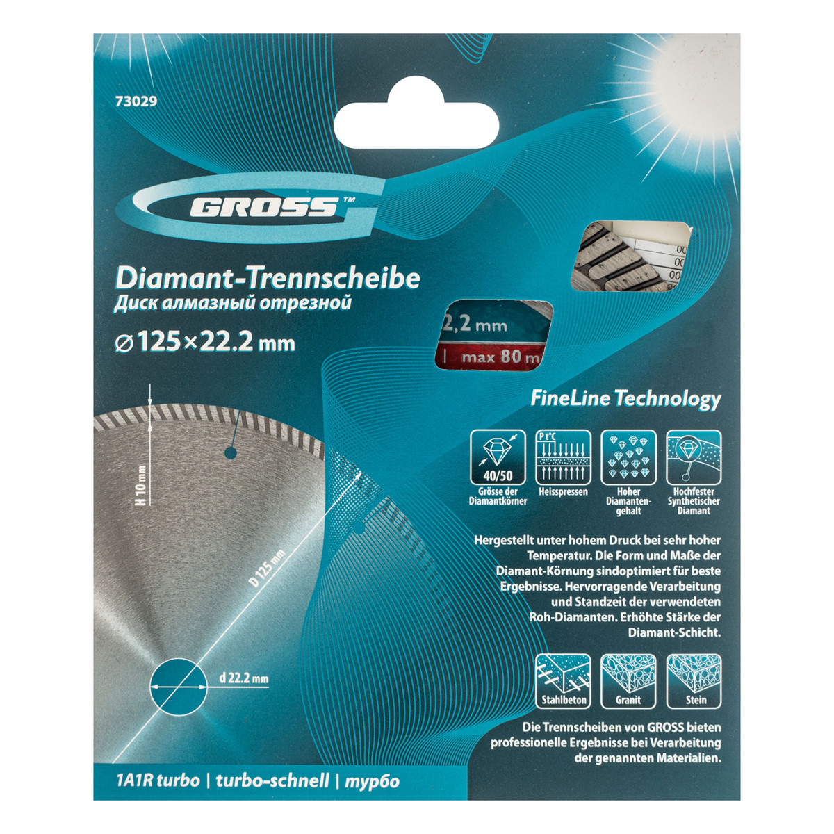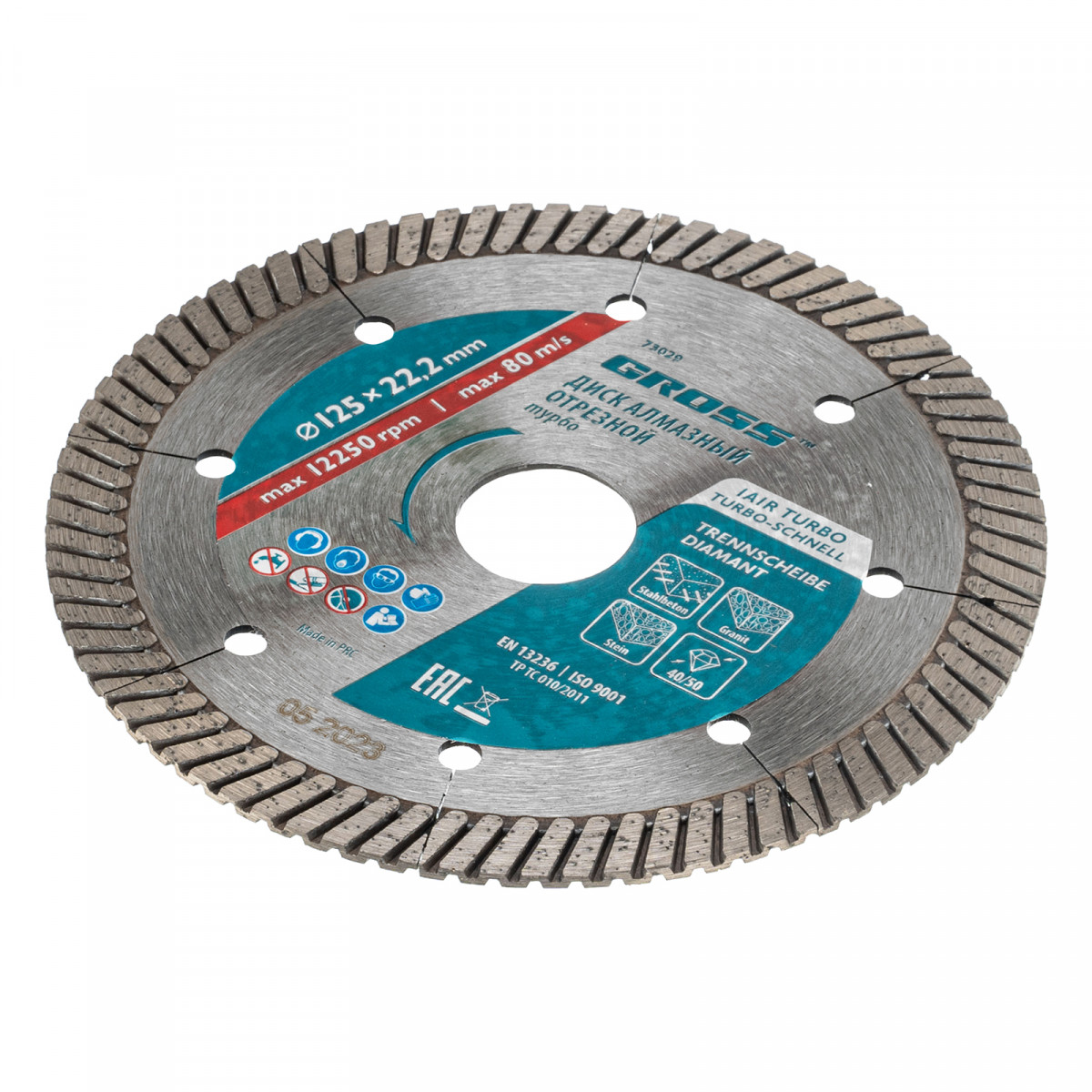 Диск алмазный, 125 х 22.2 мм, турбо с лазерной перфорацией, сухая резка Gross