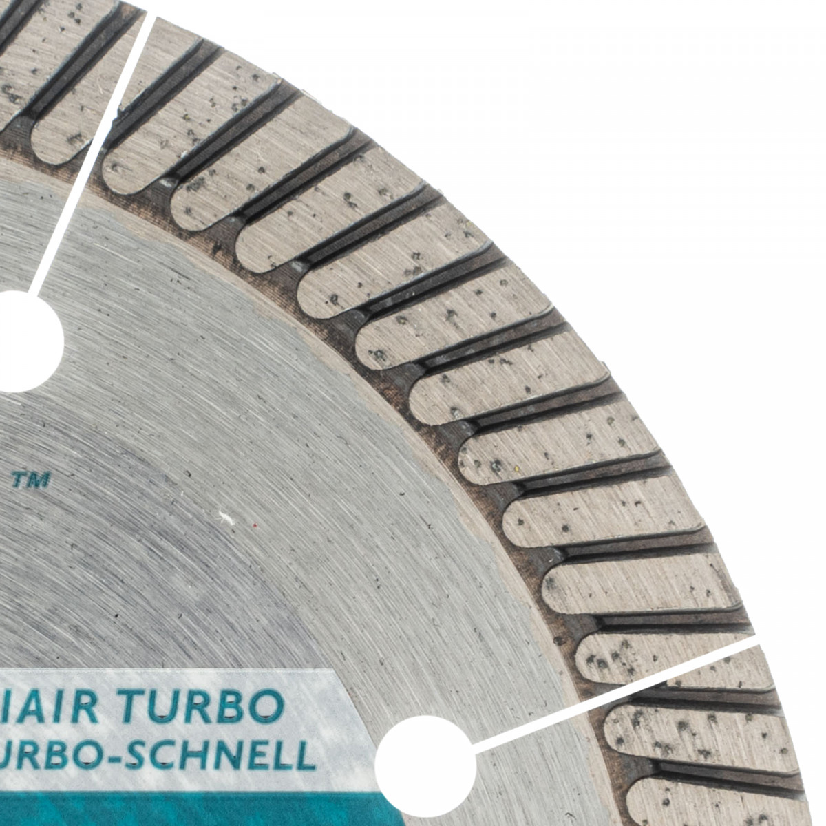 - Эффективность — турбированная режущая часть с высокой концентрацией алмазов размером 40-50 мкм обеспечивает высокую скорость резки без водяного охлаждения.