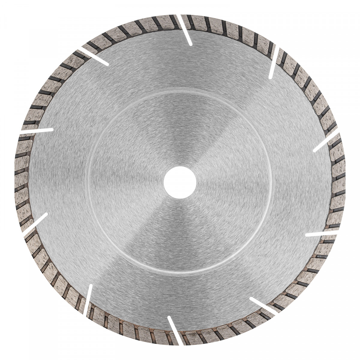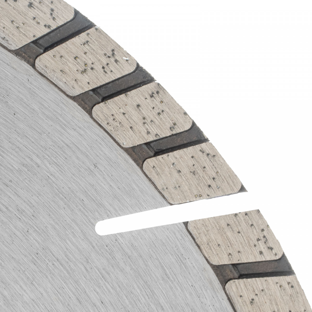 • Эффективная работа — благодаря турбо-сегментной форме диск быстро режет материалы, в т.ч. армированный бетон, водяное охлаждение не требуется.