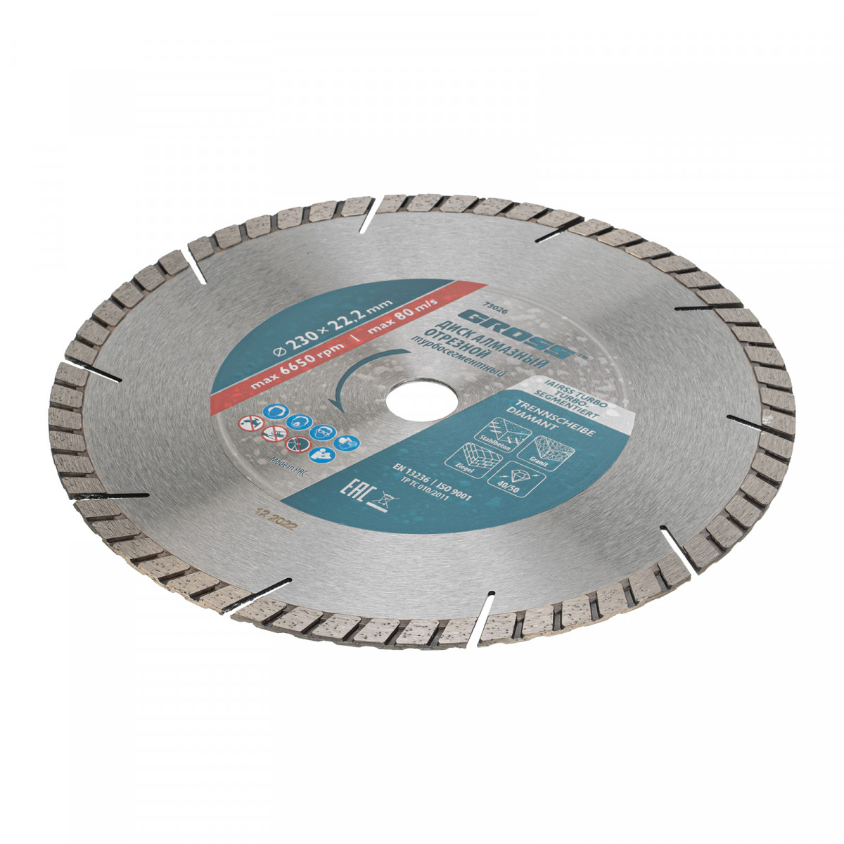 Диск алмазный, 230 х 22.2 мм, турбо-сегментный, сухая резка Gross