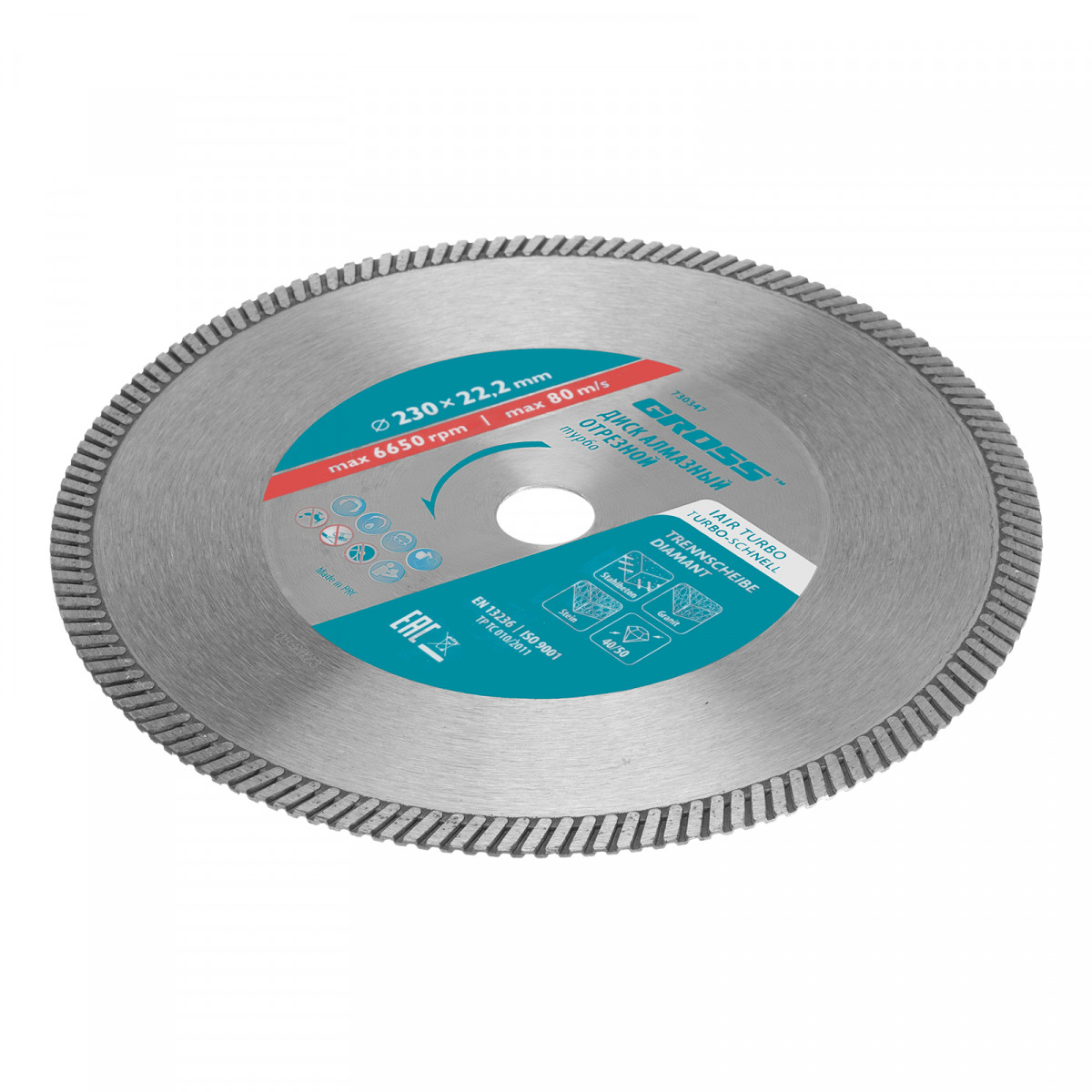 Диск алмазный, 230 х 22.2 мм, турбо, сухая резка Gross