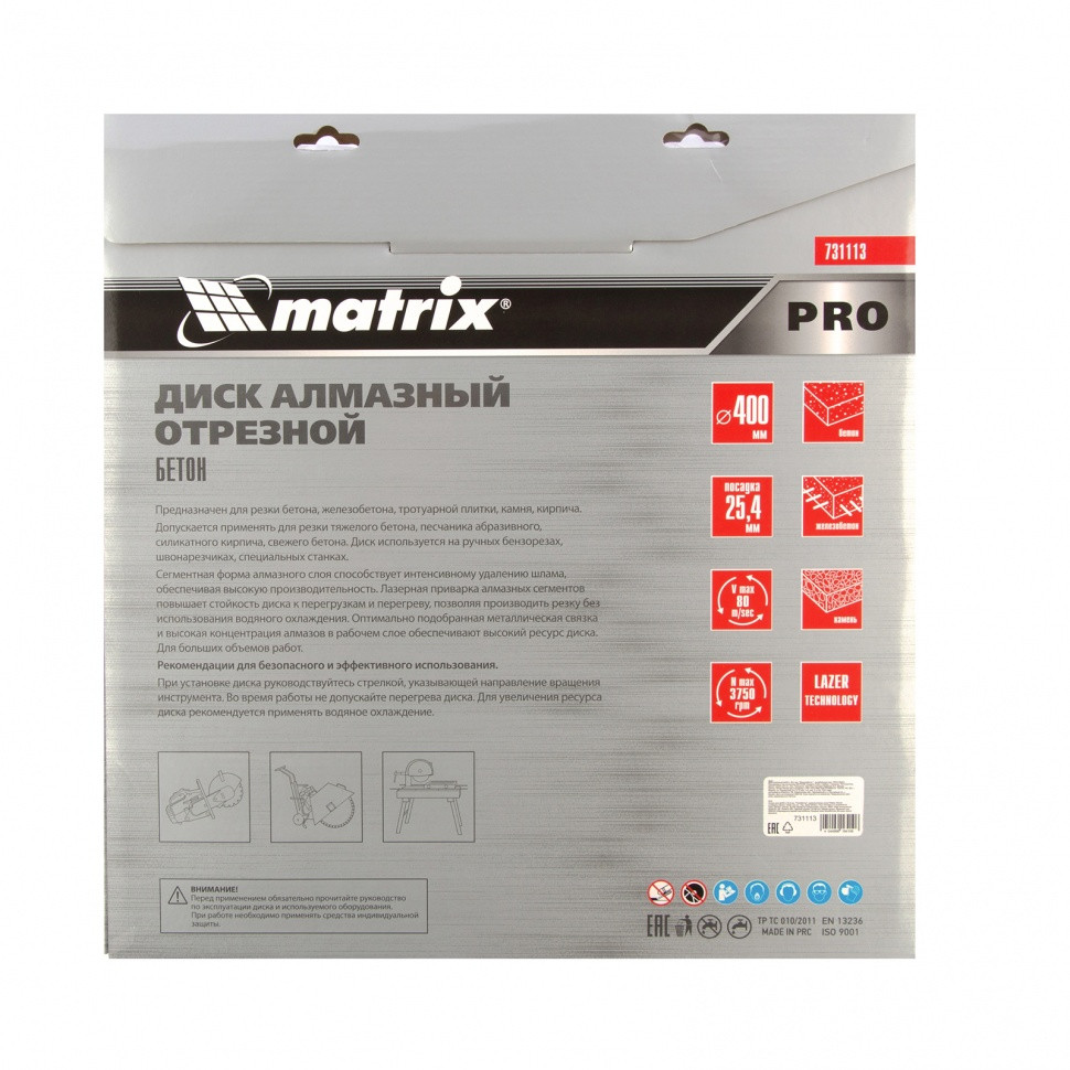 Диск алмазный 400 х 25.4 мм, "Железобетон ", сухой/мокрый рез, Pro Matrix
