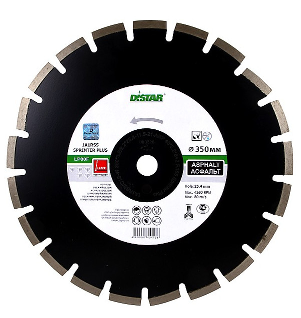 Круг отрезной LP80F 1A1RSS/C1S-W 350*3,2/2,2*10*25,4-21 F4 Sprinter Plus – подходит для бензорезов и швонарезчиков.