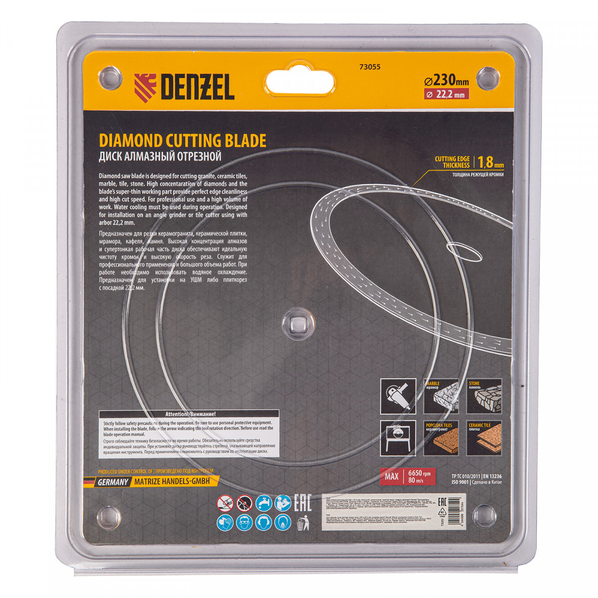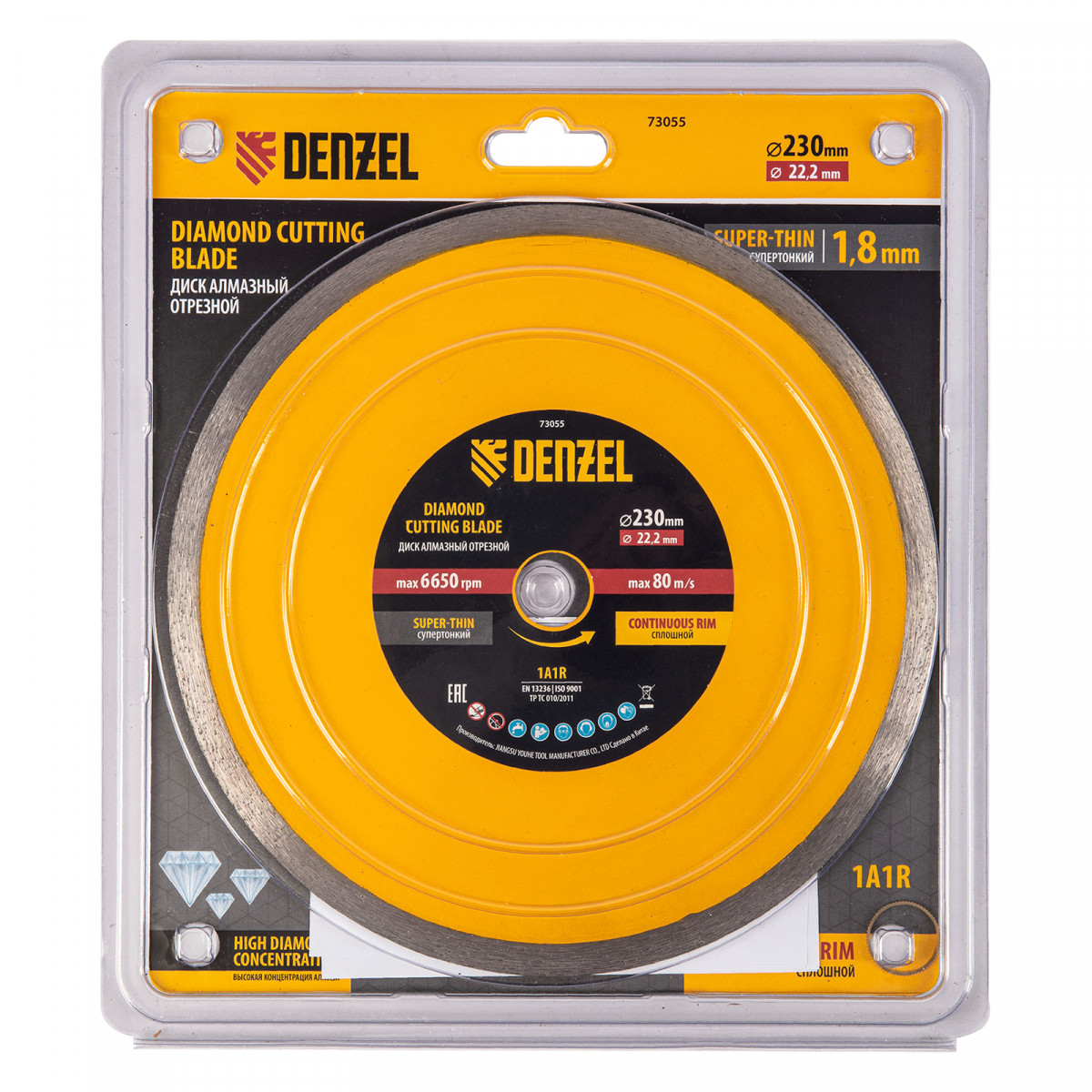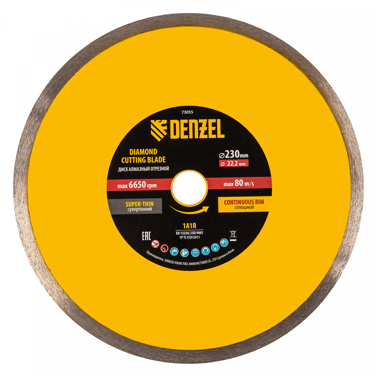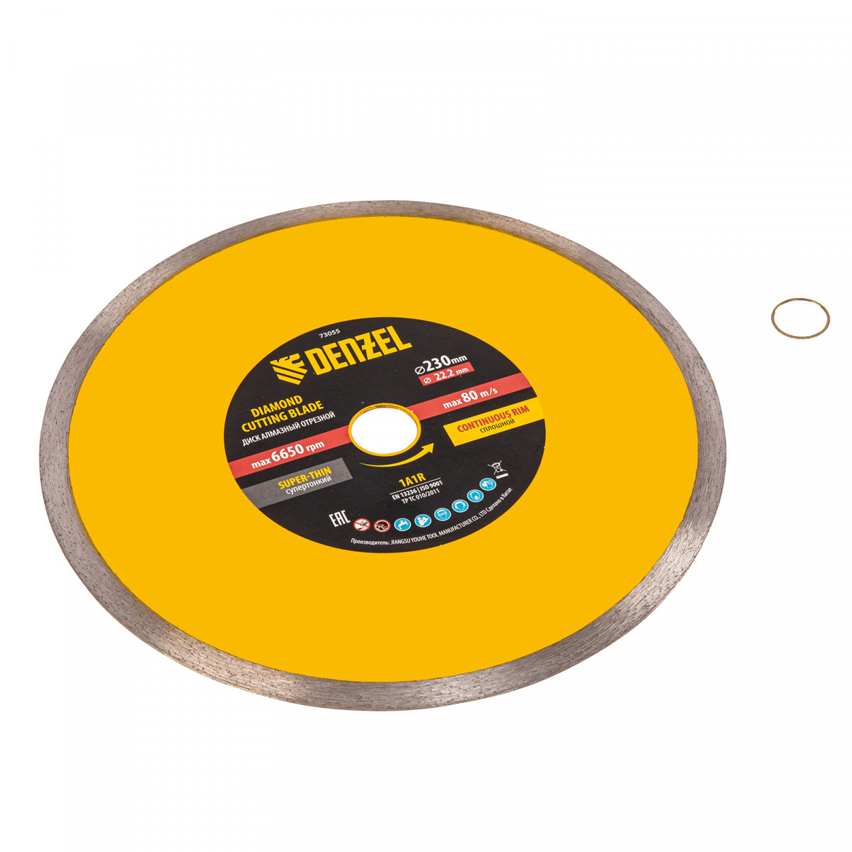 Диск алмазный отрезной 230 х 22,2 мм, сплошной, супертонкий, горячий пресс, мокрое резание Denzel