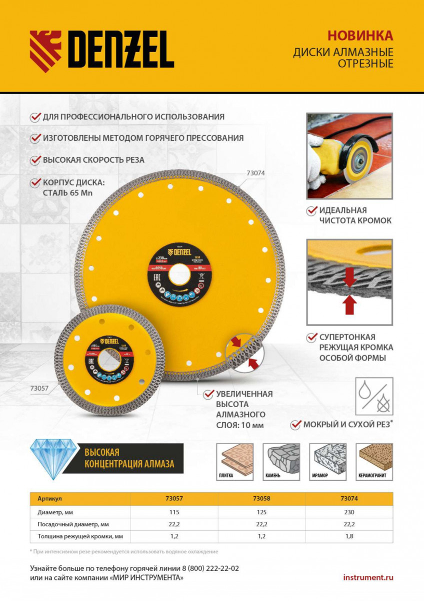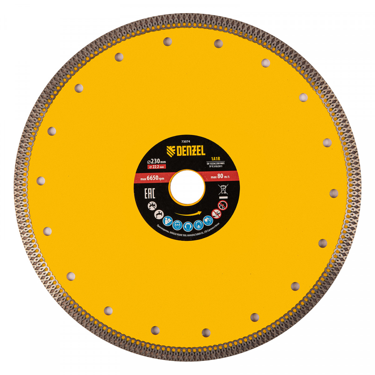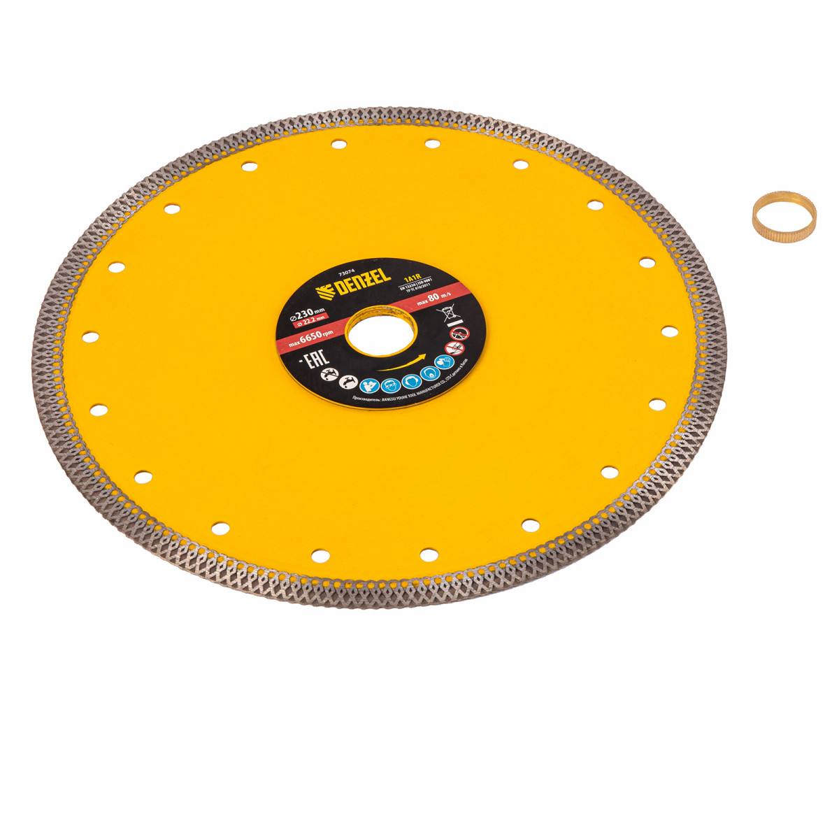 Диск алмазный отрезной 230 х 22,2мм, сплошной, супертонкий, горячий пресс, сухой/мокрый рез Denzel