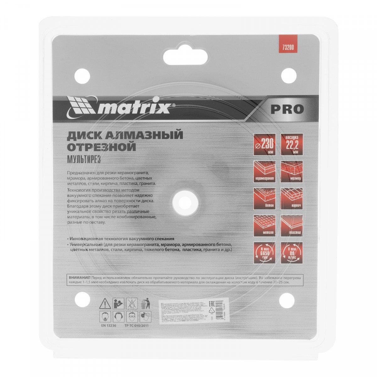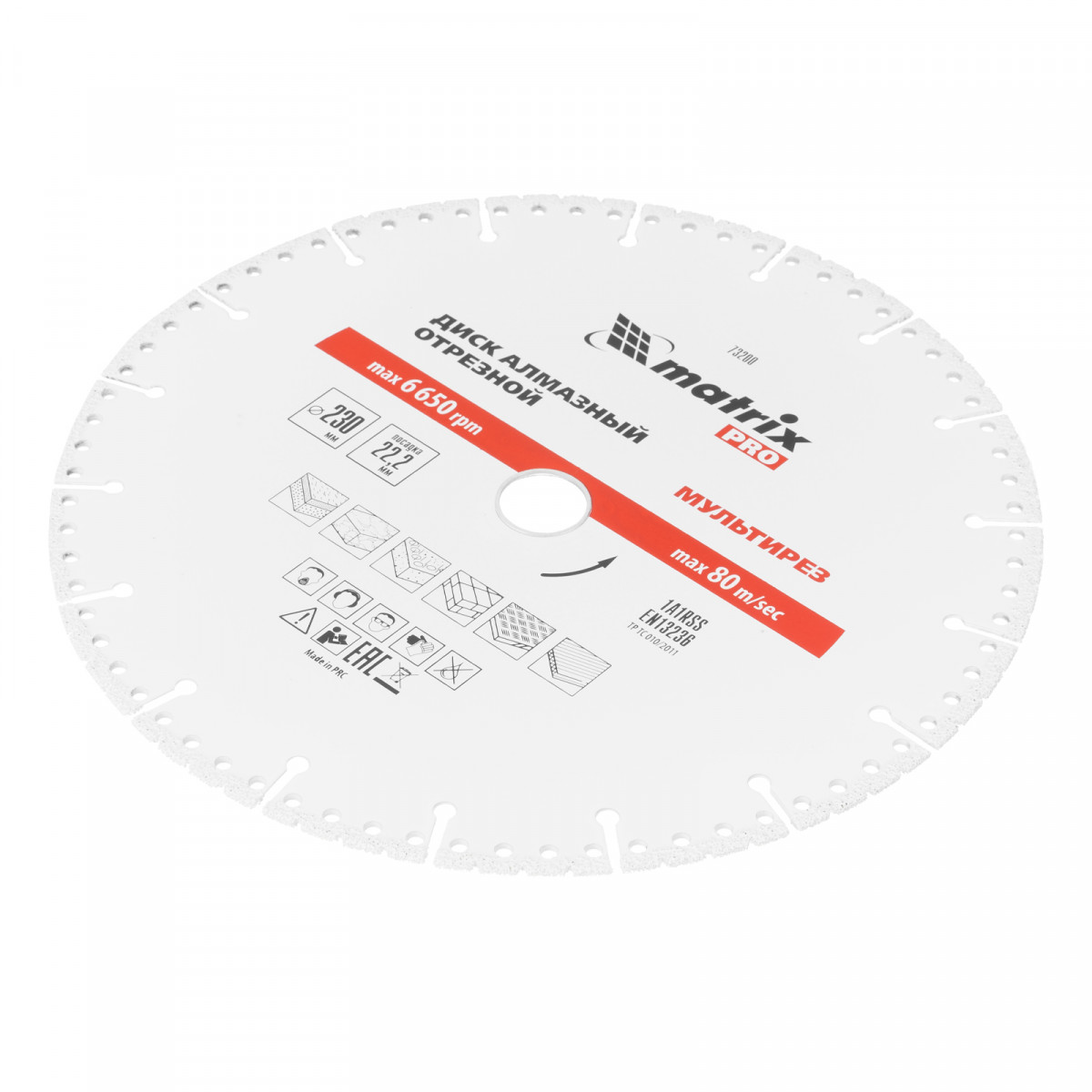 Диск алмазный отрезной "Мультирез" D 230 х 22.2 мм, сухой/мокрый рез, PRO Matrix