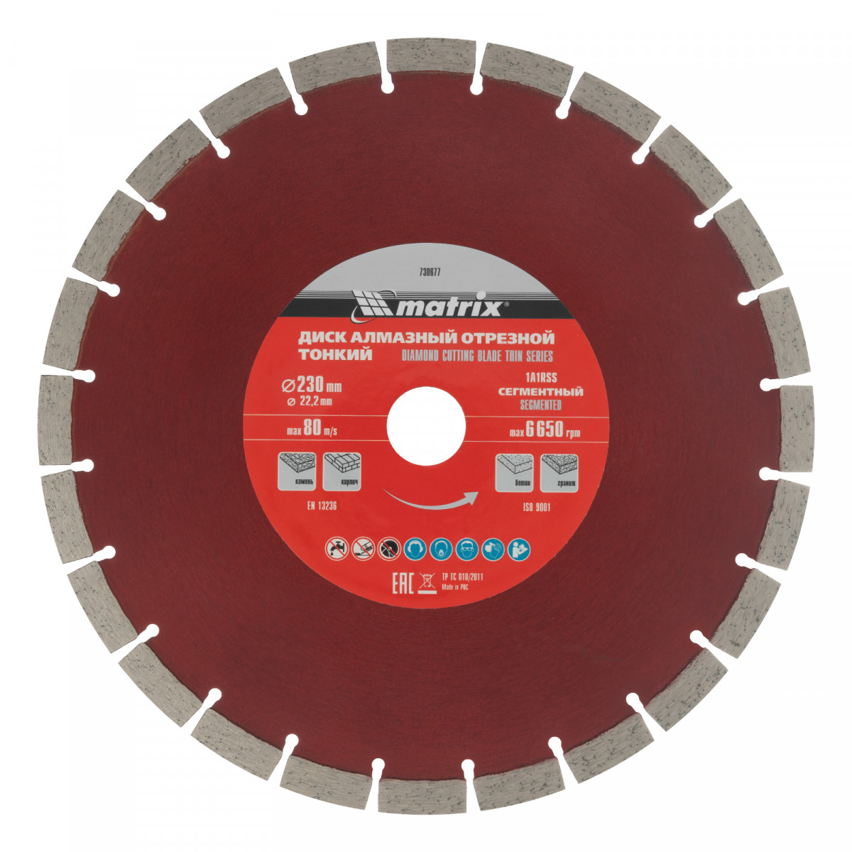 Диск алмазный, отрезной сегментный, 230 х 22.2 мм, тонкий, сухая резка Matrix Professional