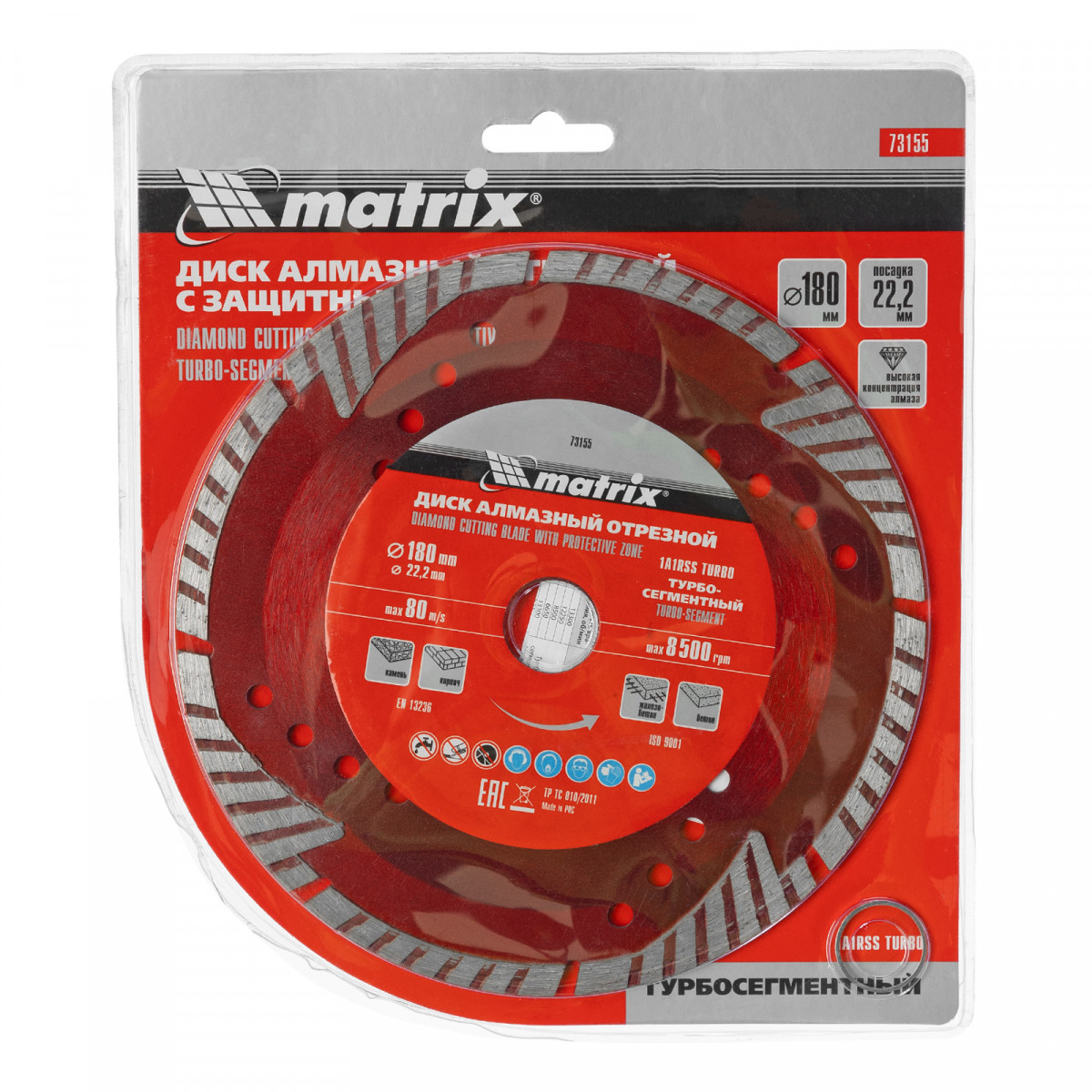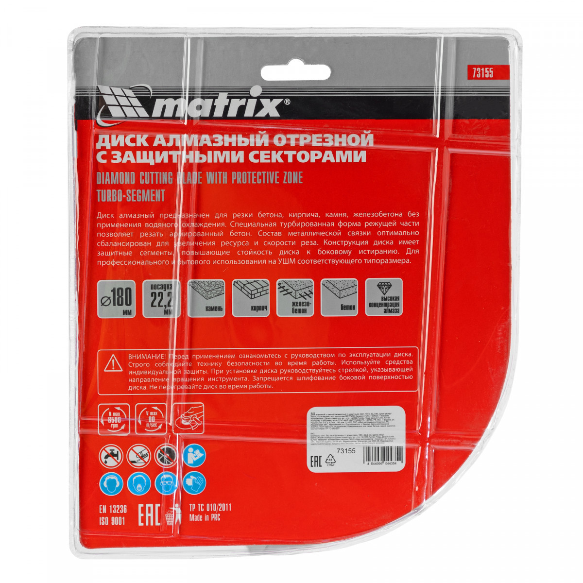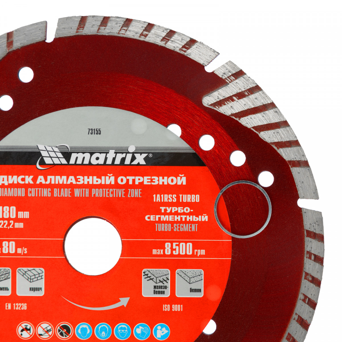 Диск алмазный, отрезной сегментный с защитными сект, 180 х 22.2 мм, сухая резка Matrix Professional