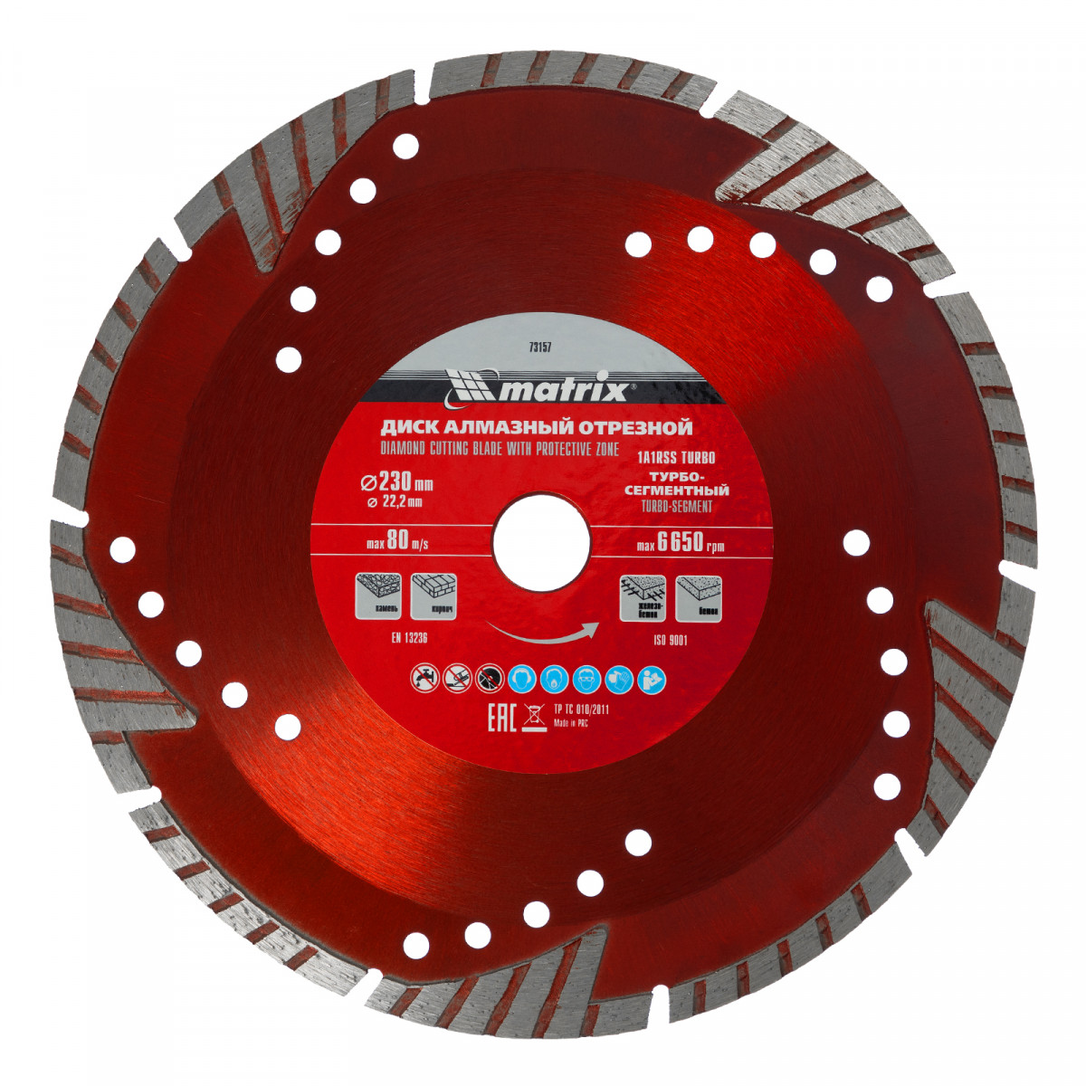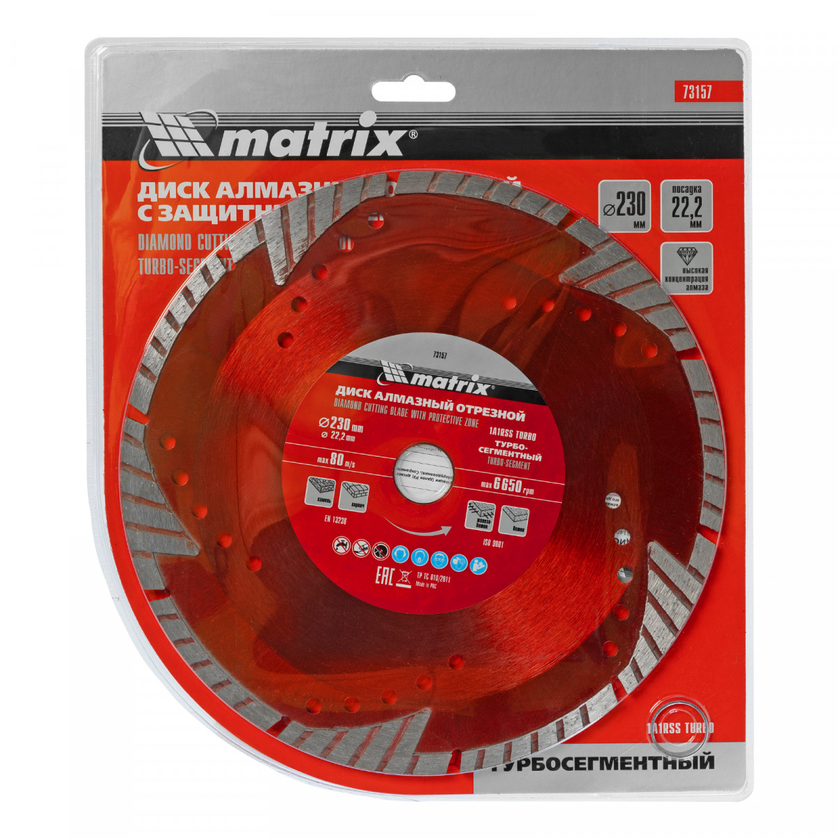 Диск алмазный, отрезной сегментный с защитными сект, 230 х 22.2 мм, сухая резка Matrix Professional