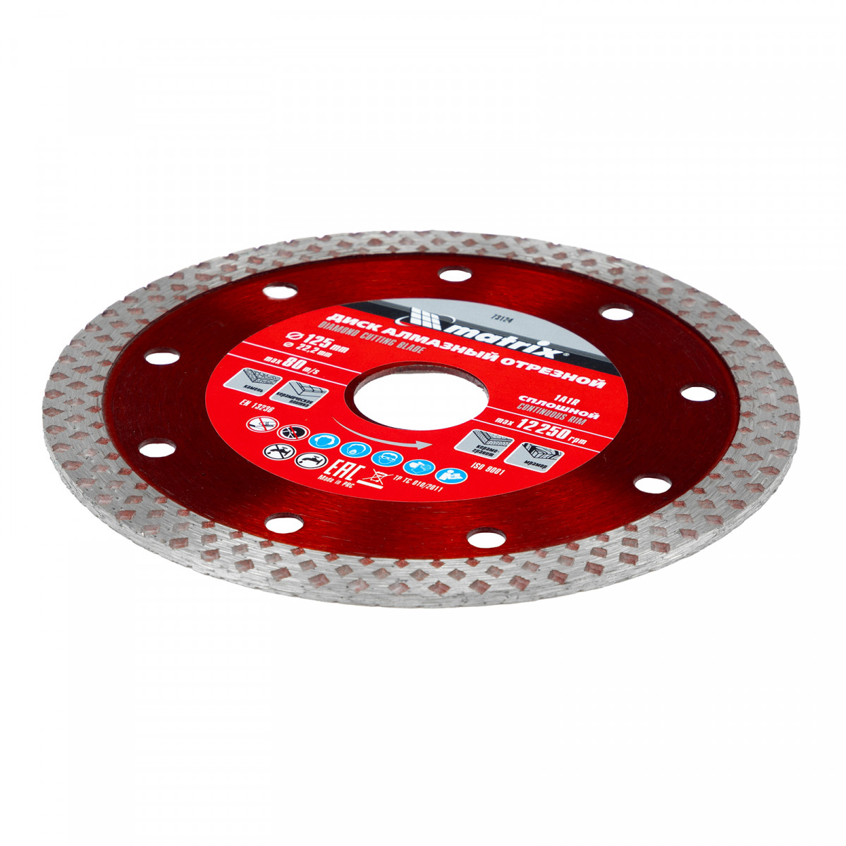 Диск алмазный, отрезной сплошной, 125 х 22.2 мм, сухая резка Matrix Professional
