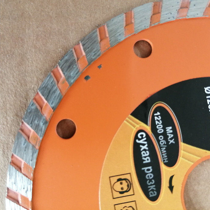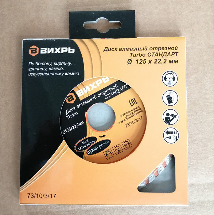 Диск алмазный отрезной Турбо СТАНДАРТ, 125 х 22,2 мм, сухая резка Вихрь - это алмазный отрезной диск, который используется совместно с угловыми шлифмашинами (болгарками) для сухой резки гранитных, бетонных, кирпичных и каменных изделий.