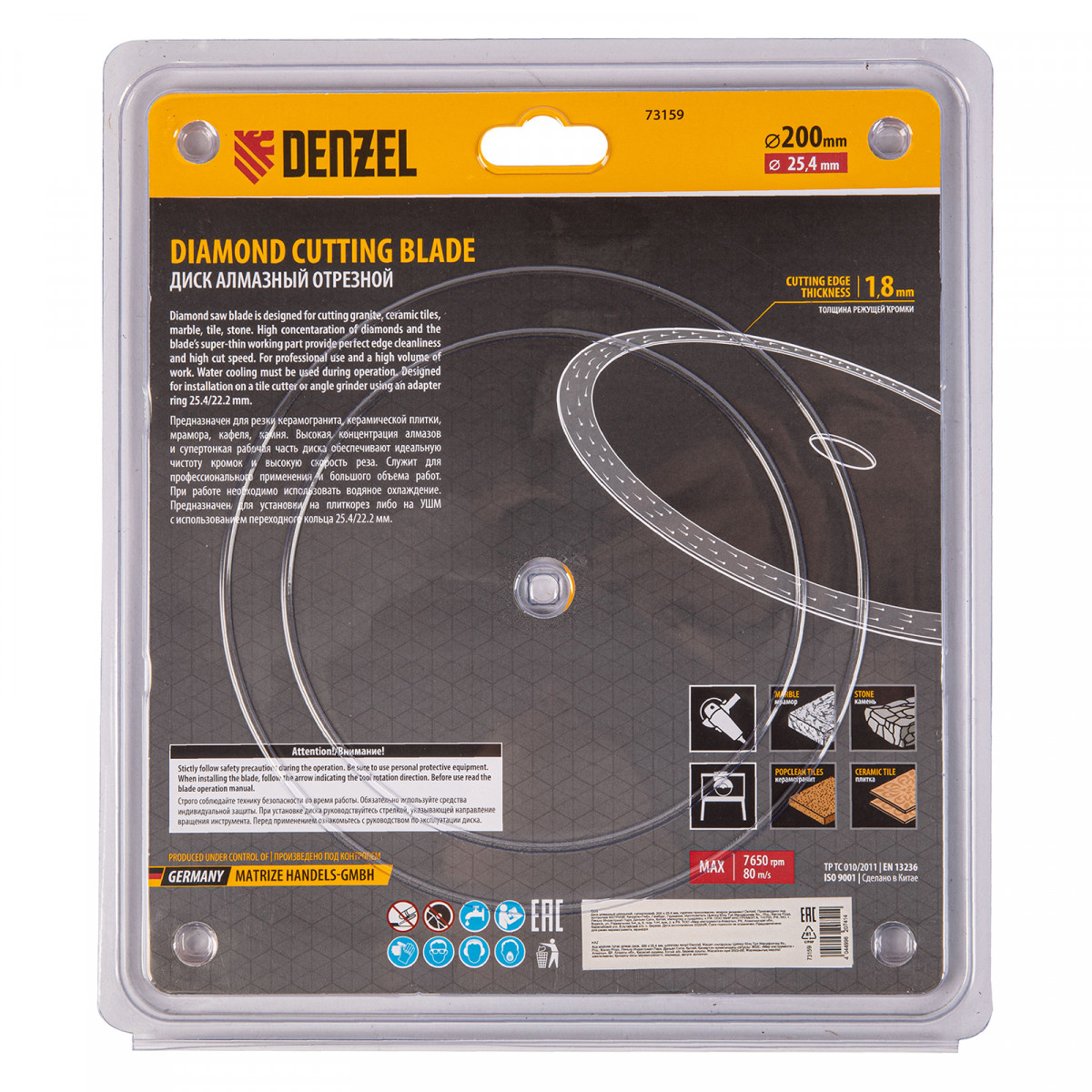Диск алмазный сплошной, супертонкий, 200 х 25,4 мм, горячее прессование, мокрое резание Denzel