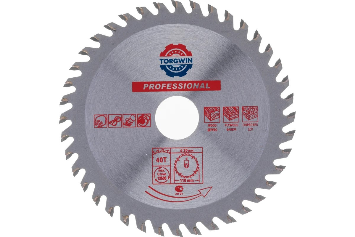 Диск пильный по дереву 110 40зуб.*20мм переходное кольцо 16 TORGWIN