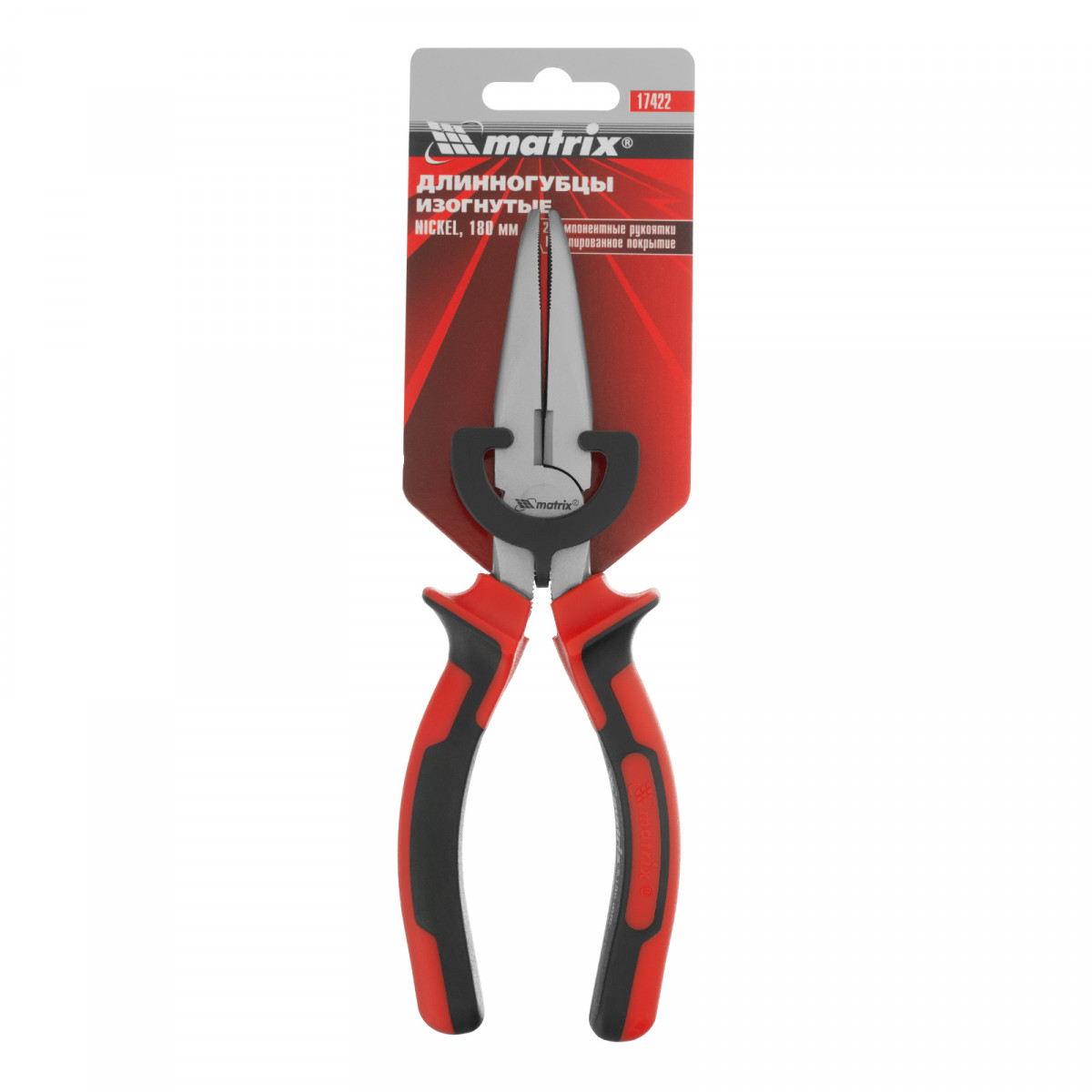 Длинногубцы изогнутые Nickel, 180 мм, никелированные, двухкомпонентные рукоятки Matrix