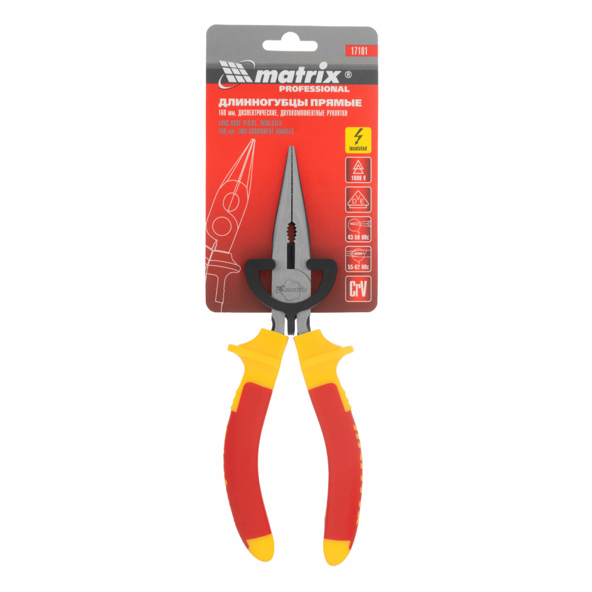 Длинногубцы прямые Insulated, 160 мм, двухкомпонентные рукоятки Matrix Professional